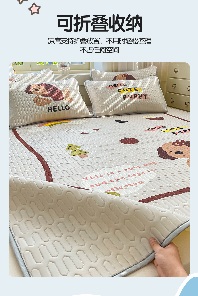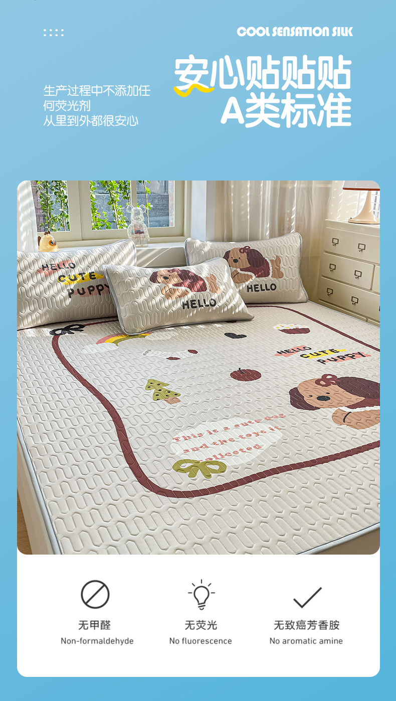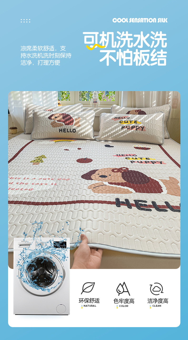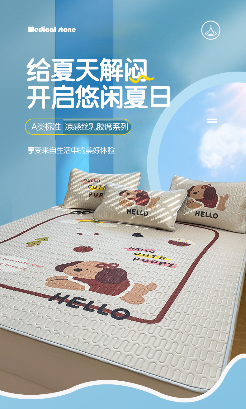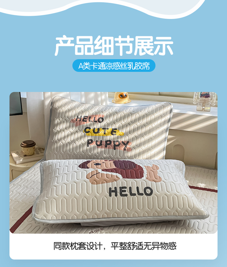 商品名称:布卢姆床垫 2025新款卡通A类大版数码凉感丝乳胶凉席 彩虹狗