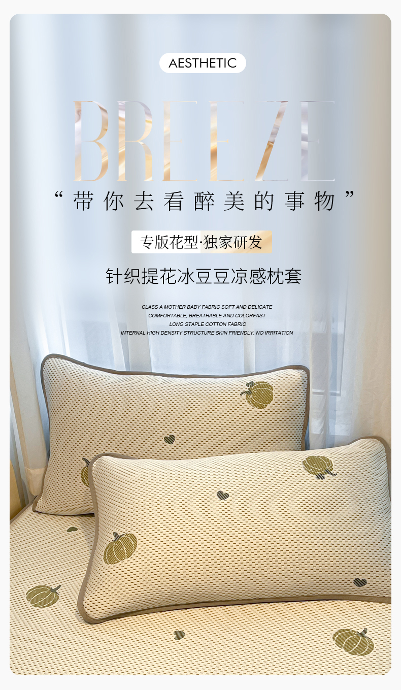 商品名称:LIFE.丽芙 2025春夏季新品A类针织提花冰凉豆豆凉感枕头套机包边款(风格二) 南瓜-绿