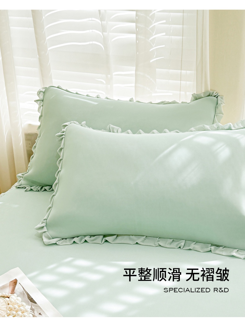 商品名称:LIFE.丽芙 2025春夏新款独家研发太空层凉感冰丝双层荷叶边枕头套 水绿