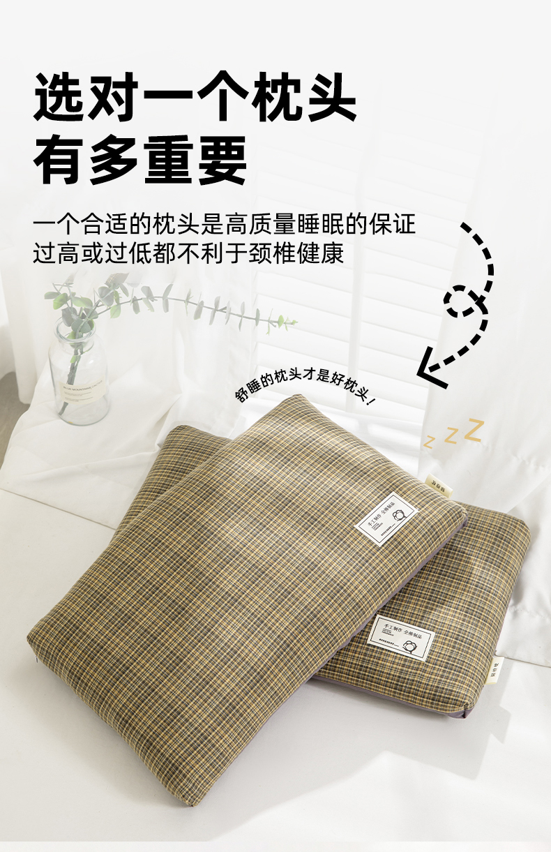商品名称:(总)织布人 2025春夏新款荞麦枕全棉纯棉色织立体无印风荞麦枕头学生宿舍成人家用枕芯单枕芯