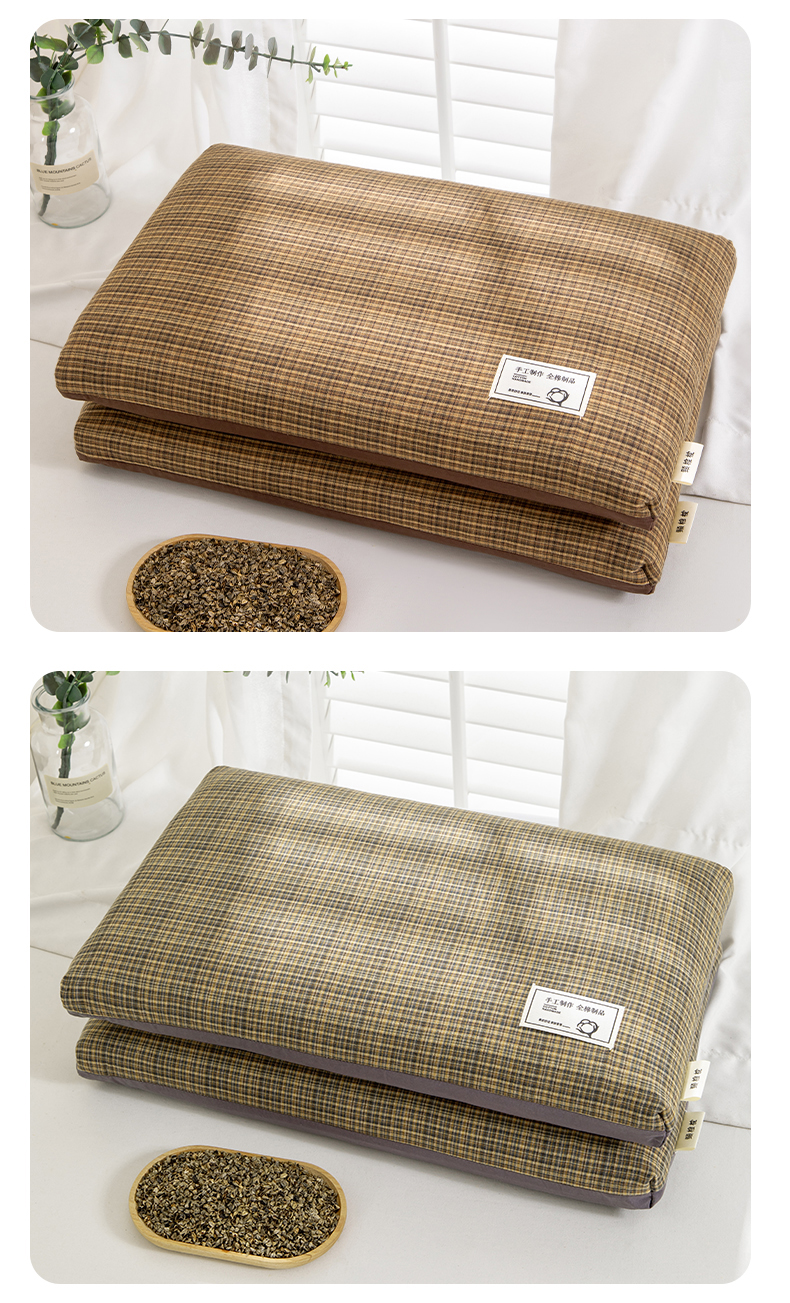 全棉色织立体荞麦枕-栗木 35x55cm/只