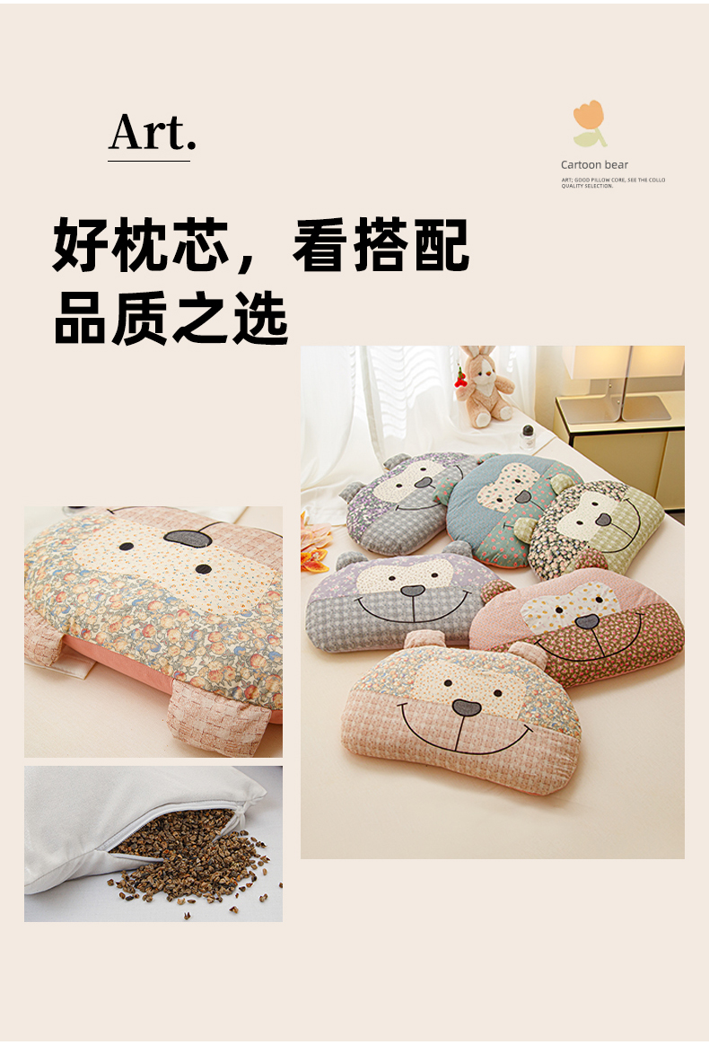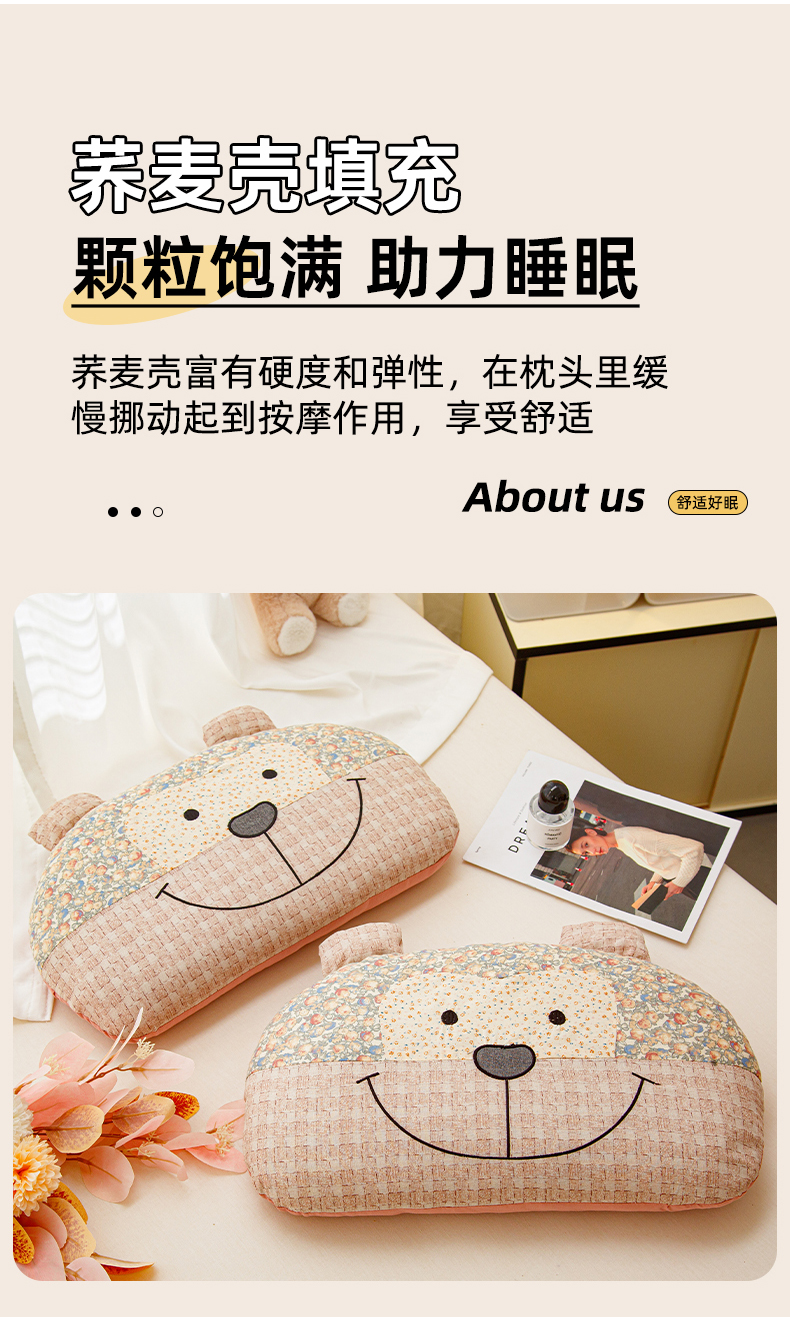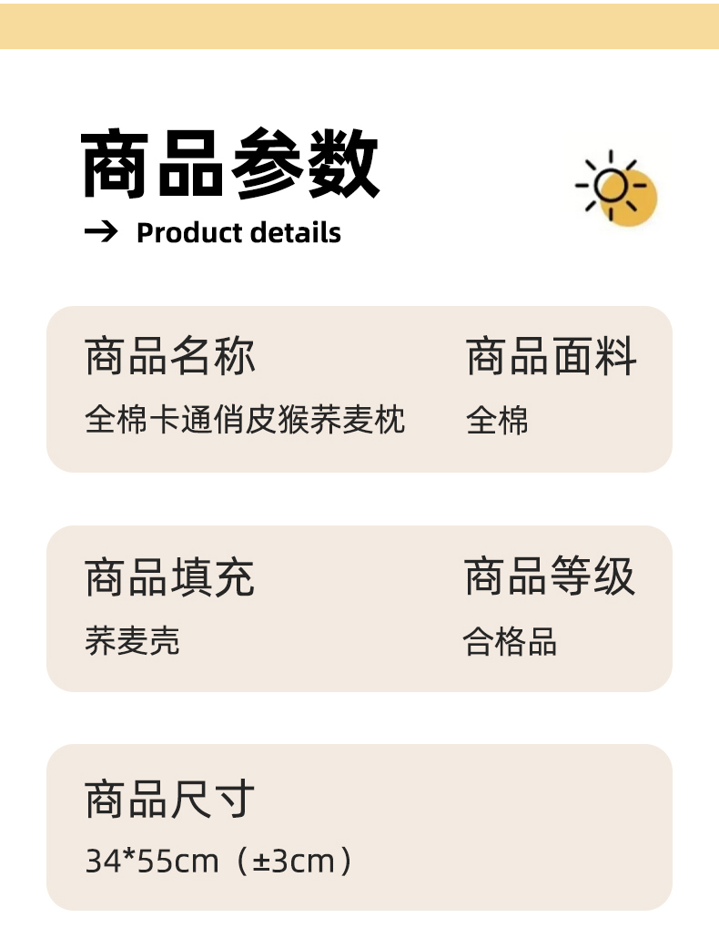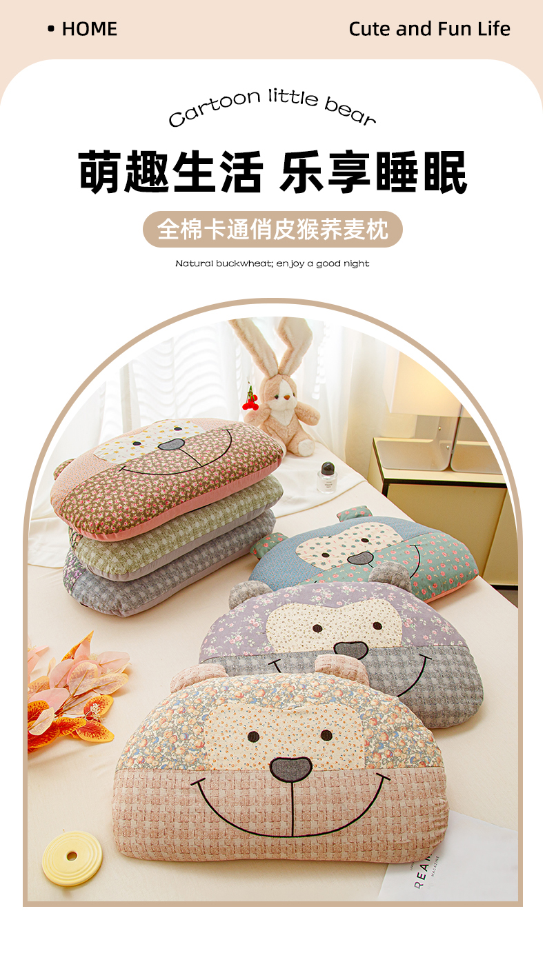 商品名称:(总)织布人 2025春夏新款荞麦枕直播爆款全棉纯棉双层纱调皮猴荞麦枕头学生成人硬枕芯单枕芯