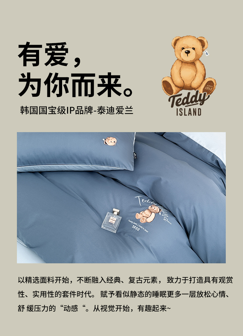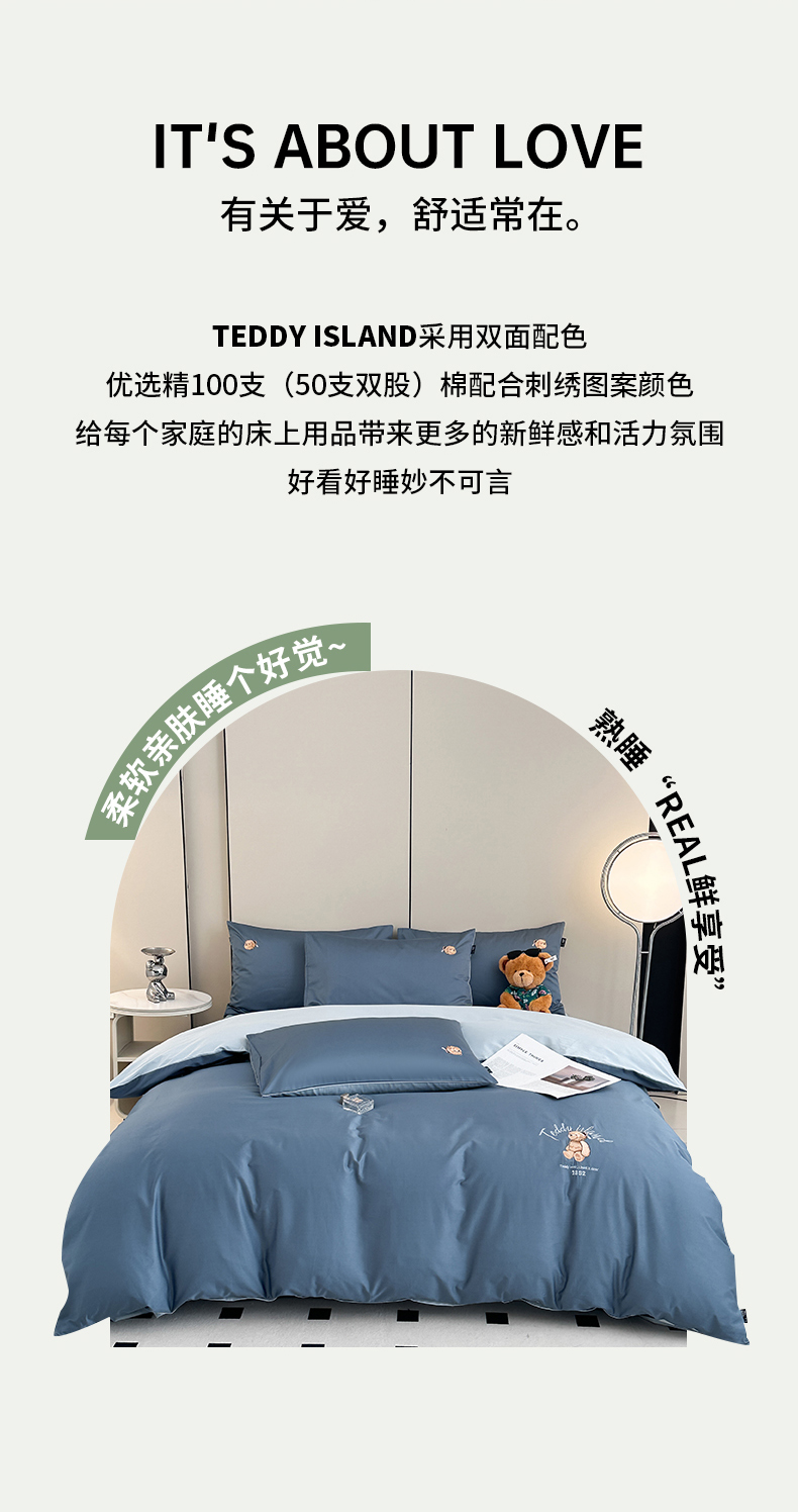当前位置: 91家纺网 > 商品网购 > 床品套件 > 四件套 > 其它四件套 > 泰迪爱兰Teddy ISLAND 2026新款100支绣花(50支)三件套四件套 宾利兰+浅蓝