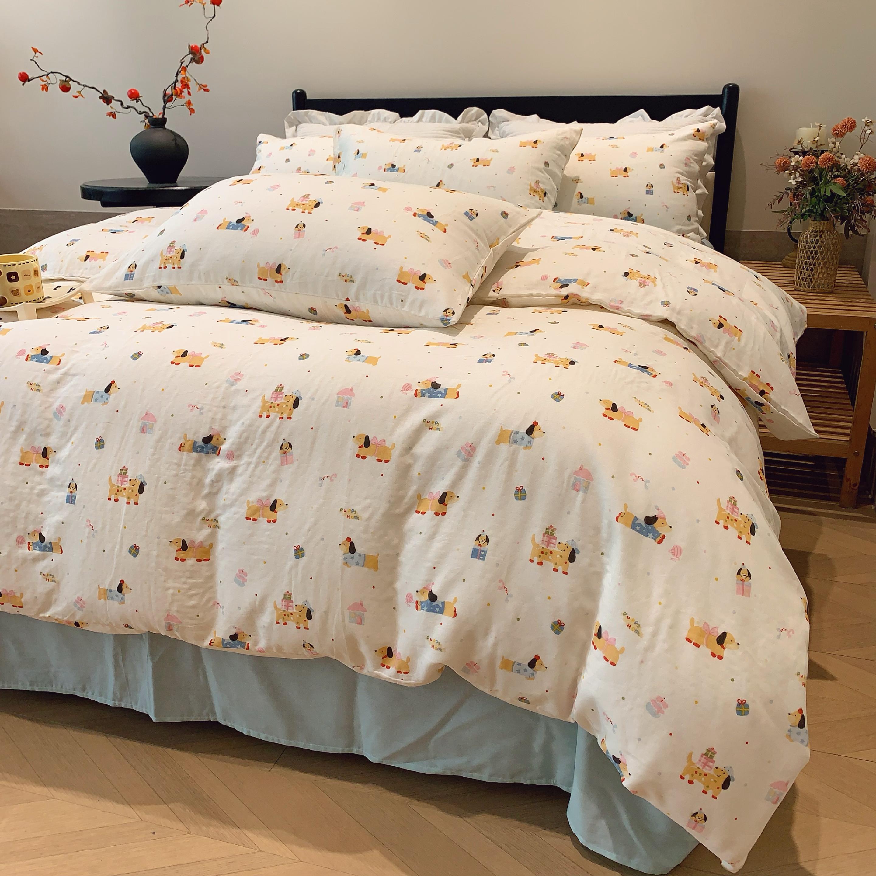 (总)莱豫家纺 2025新款小清新全棉纯棉四件套,爱心豹纹,白薇,春黛,芳华,锦绣咖,锦绣米,可爱狗狗咖,太空超人,甜橘,童年,仙本娜,小飞马,小小花园,星星人黄,星星人蓝,雅蔓