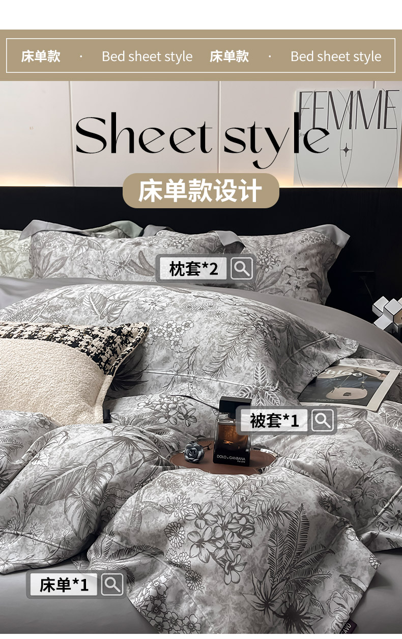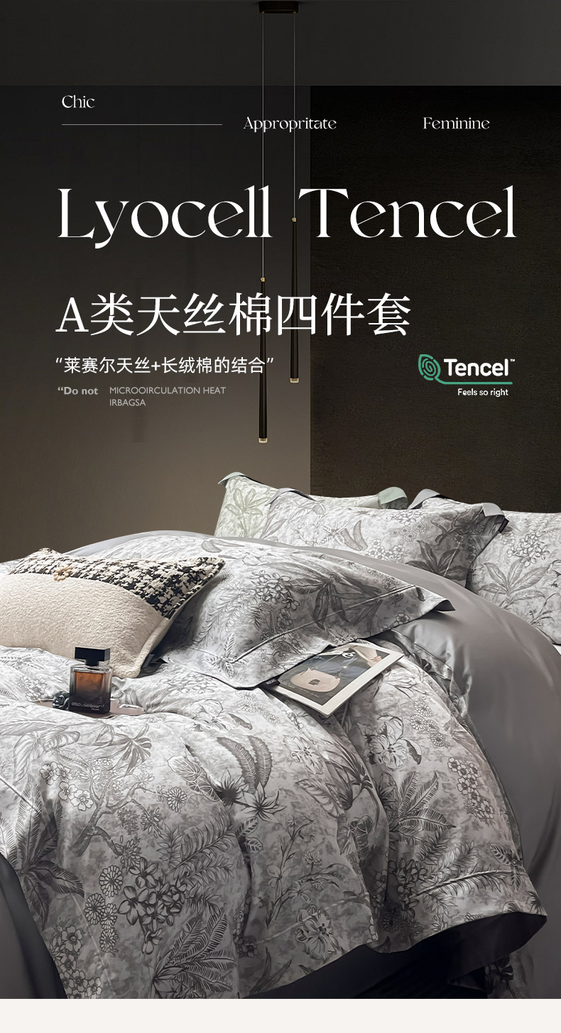 (总) 2025高端轻奢A类天丝棉印花四件套全棉数码印花丝滑裸睡被套真丝夏季床上用品