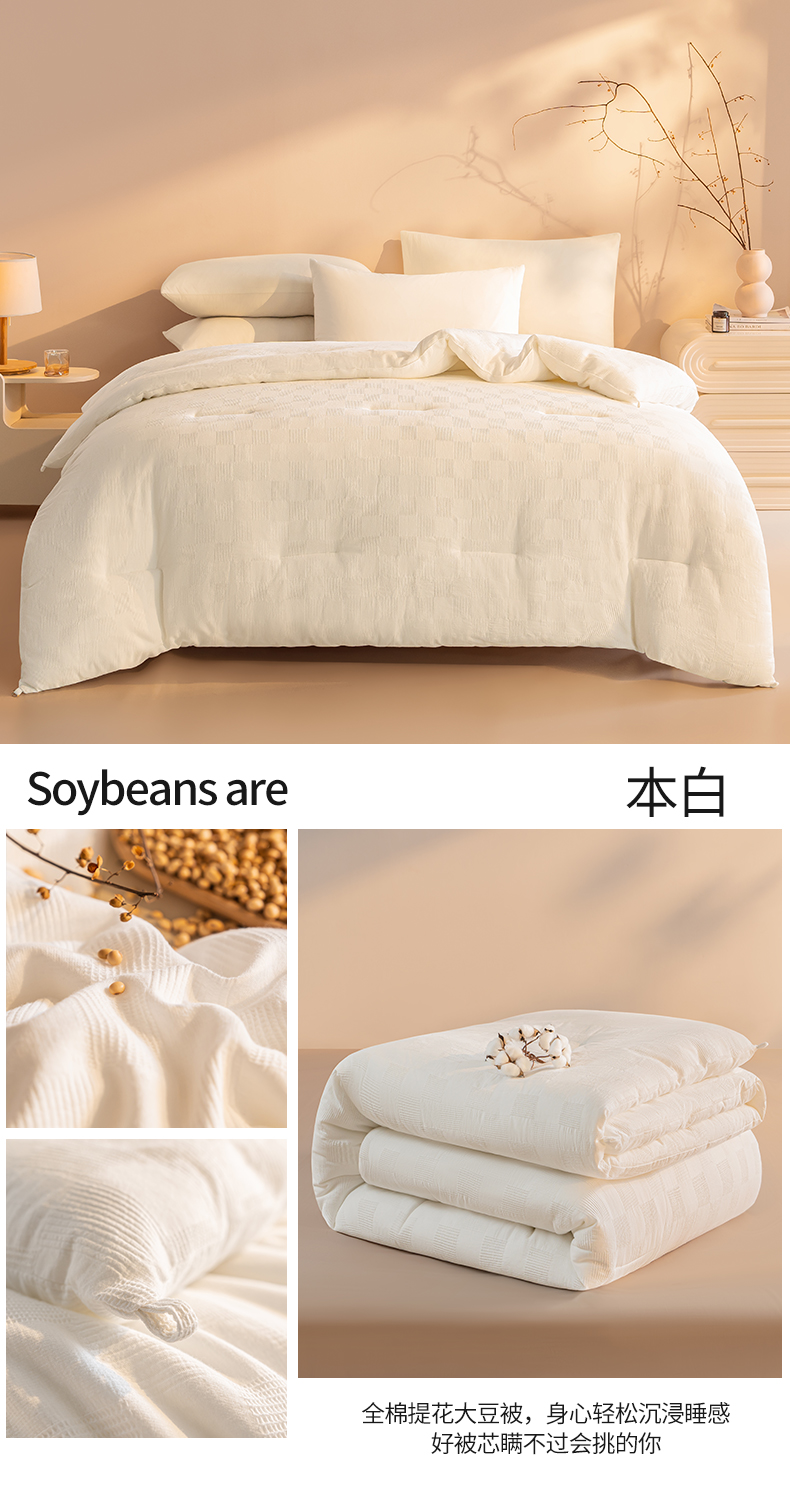 • 91家纺网 家纺一手货源 找家纺 阳光被业 2025新款100%纯棉提花大豆春秋被高端全棉面料冬被被子被芯学生夏被 玉色