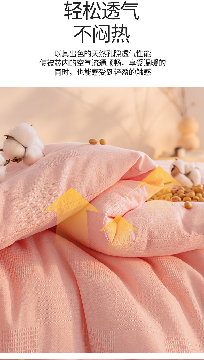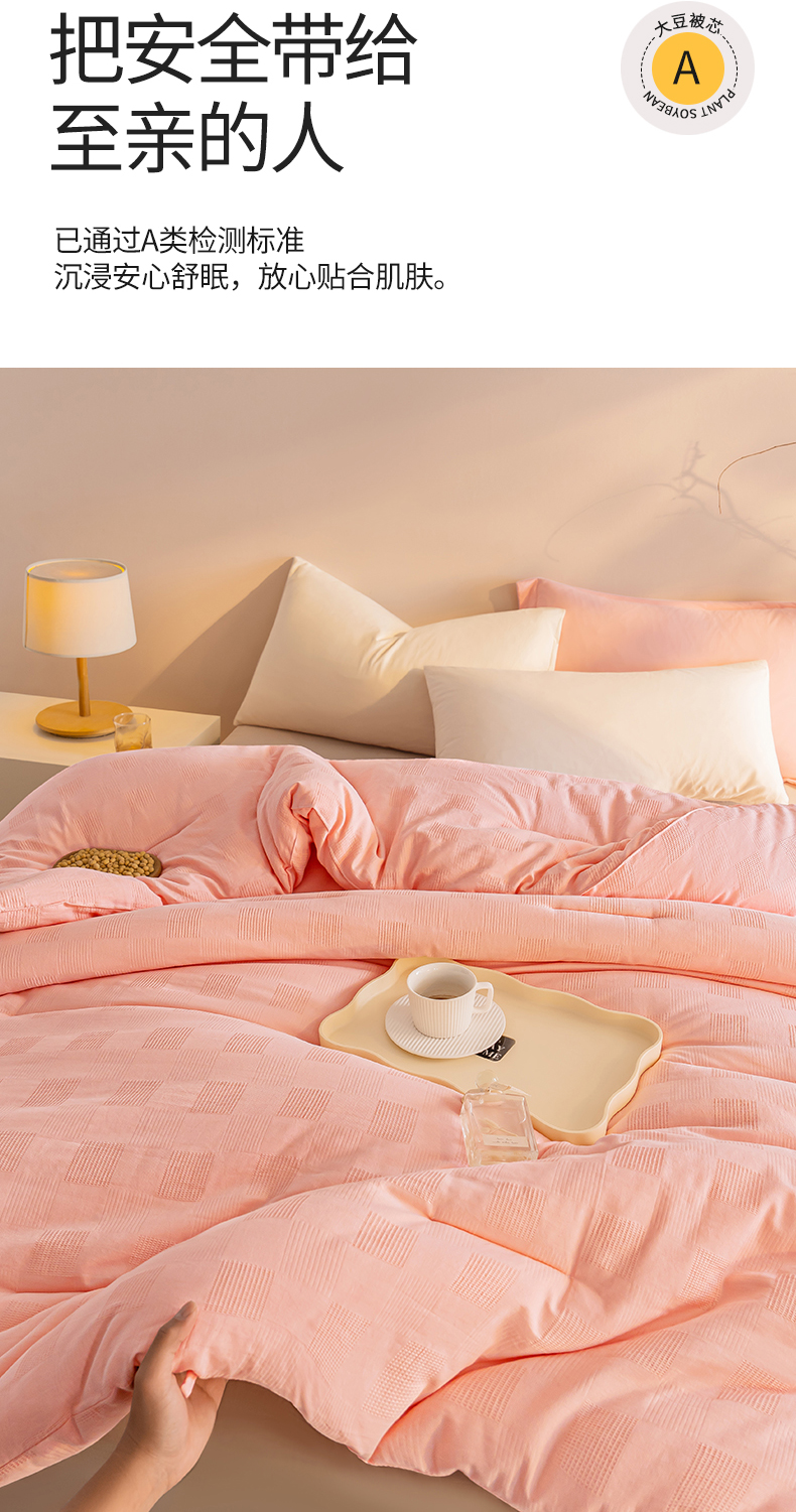 (总)阳光被业 2025亚朵同款A类针织棉大豆被春秋被四季被A类针织棉芯秋冬保暖被子,朦胧黄,深睡蓝,柔云粉