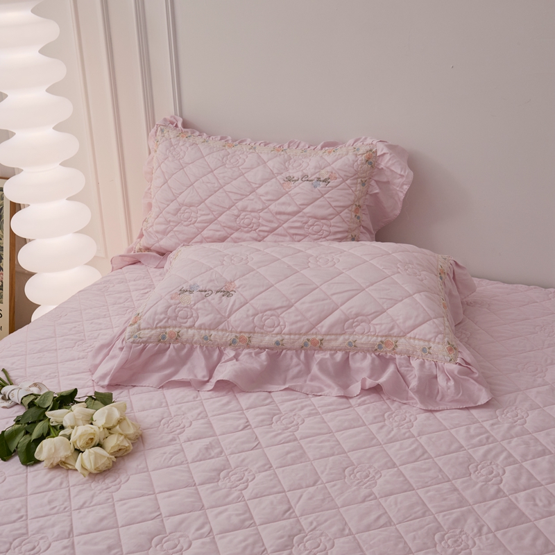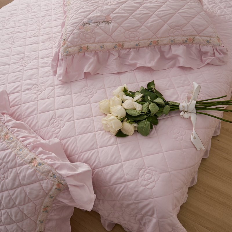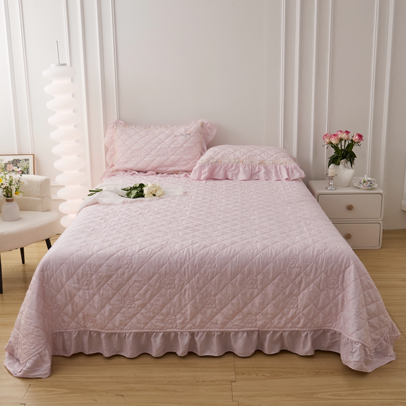 (总)上喜 2025新款全棉提花刺绣款床盖四件套,粉色,卡其色,绿色,香槟色,紫色