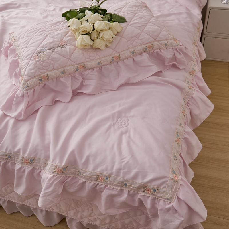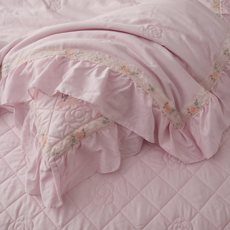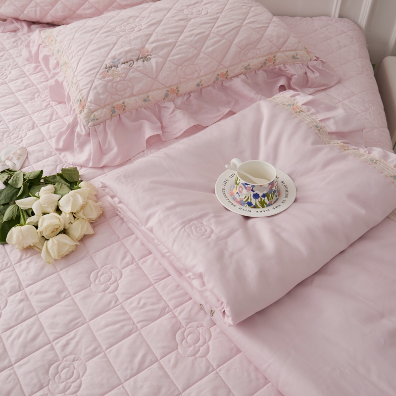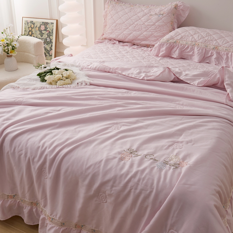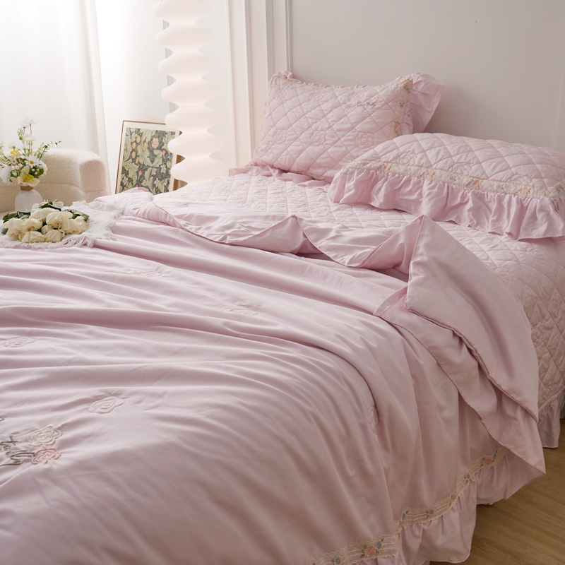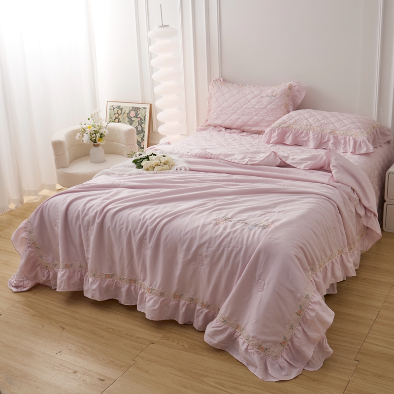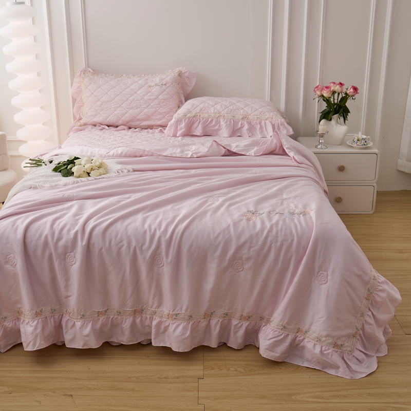 商品名称:2025新款50莱赛尔双面天丝床盖三件套 山茶花粉