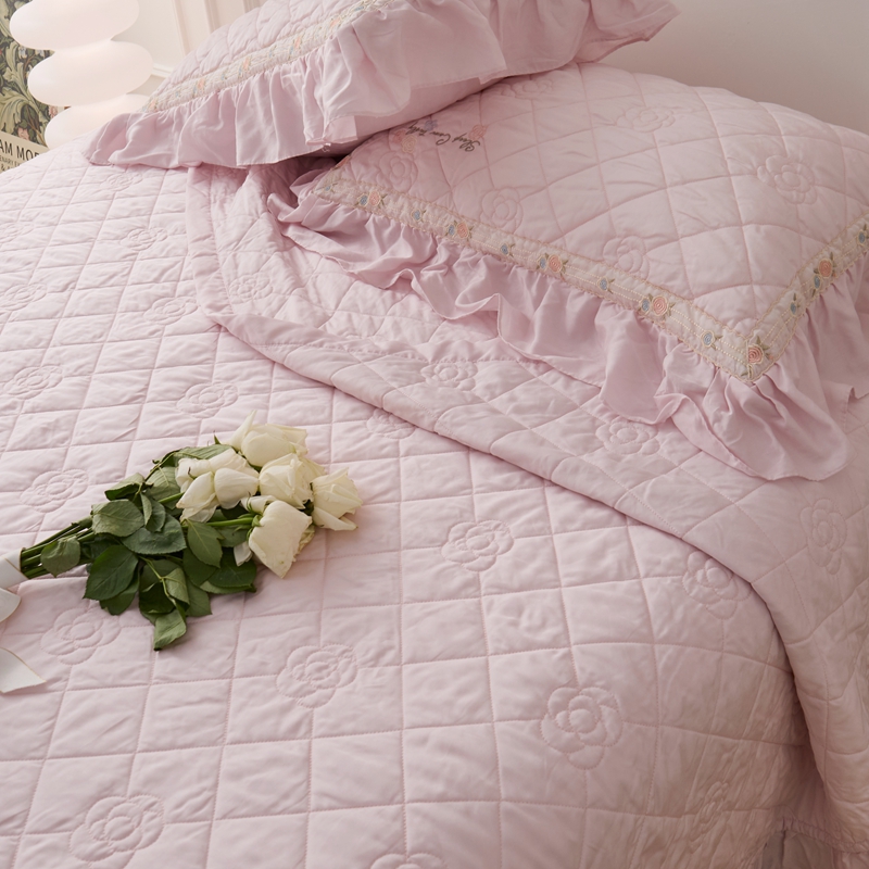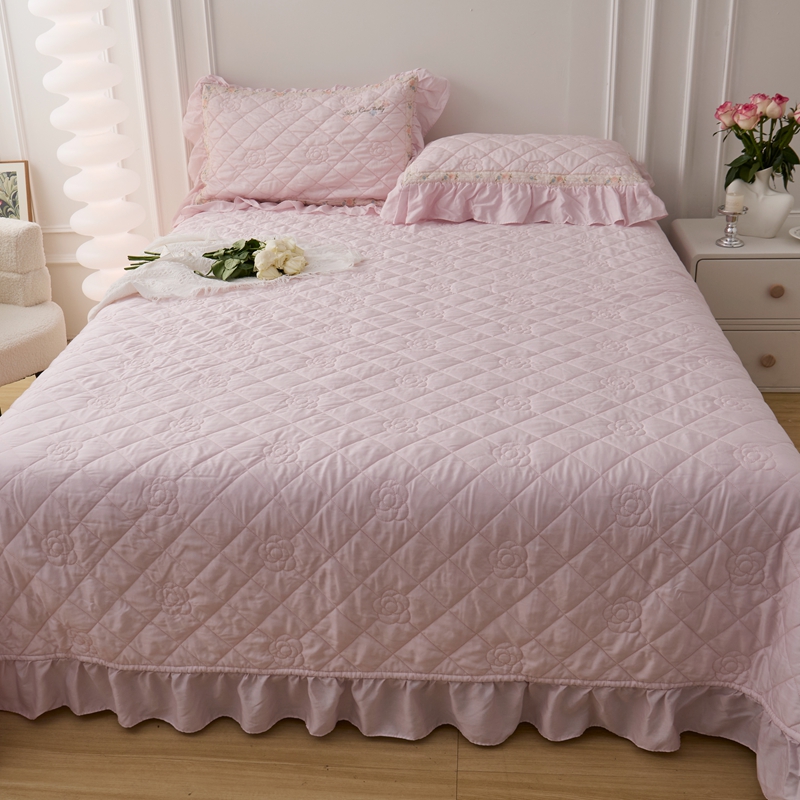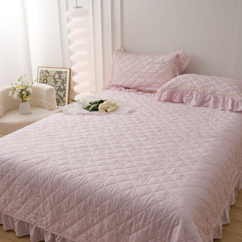 (总)上喜2025新款韩国全棉砂洗床盖系列,粉色,黄色,灰色,绿色,紫色
