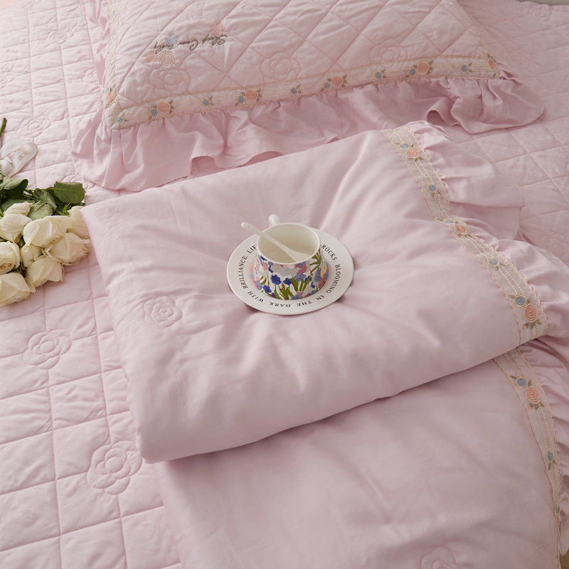 (总)上喜 2026新款棉麻小花刺绣款床盖多功能被子系列,麻本色,麻粉色
