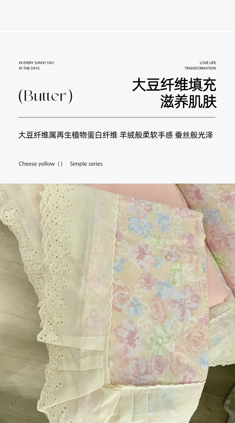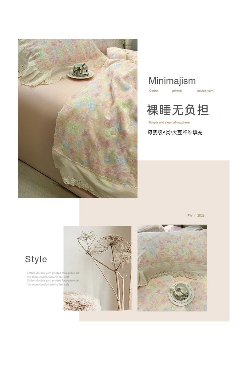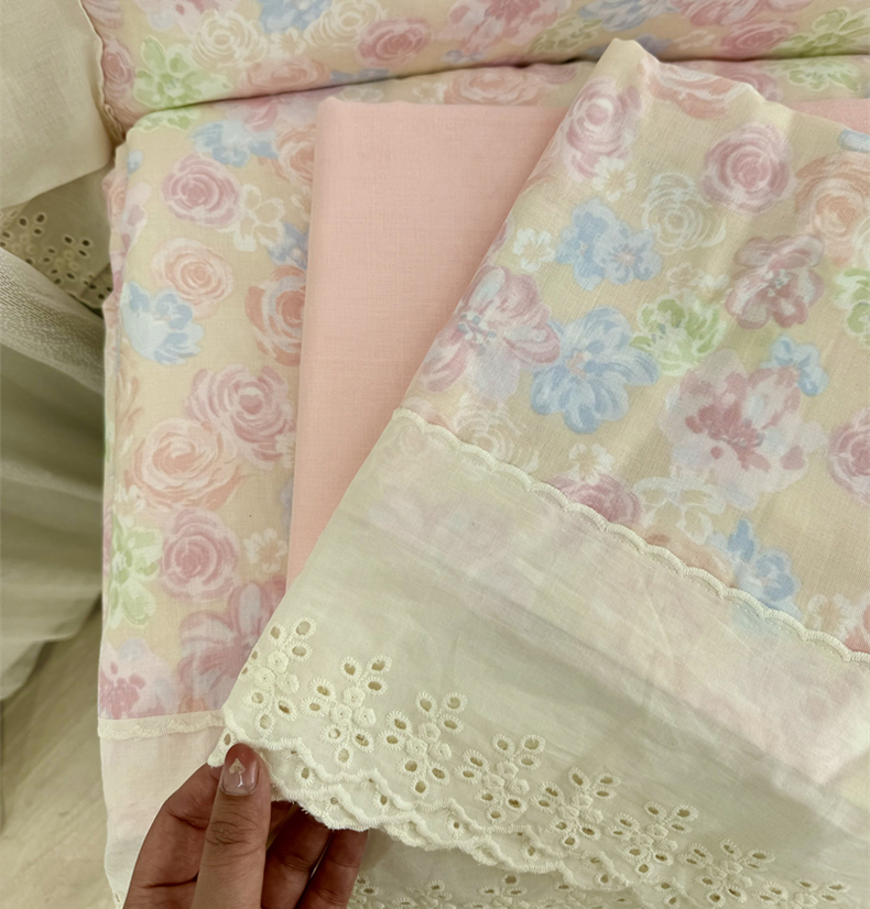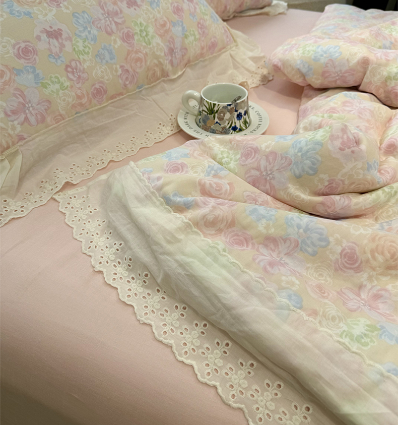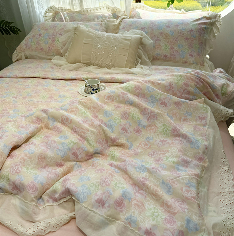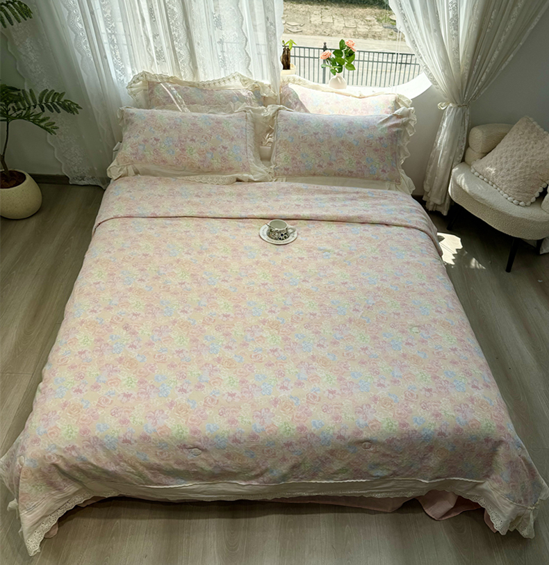 商品名称:眠博士2025新款双层纱印花花边夏被花卉系列 夏被-梨落