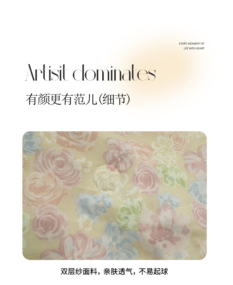 眠博士2025新款双层纱印花花边夏被花卉系列 夏被-梨落