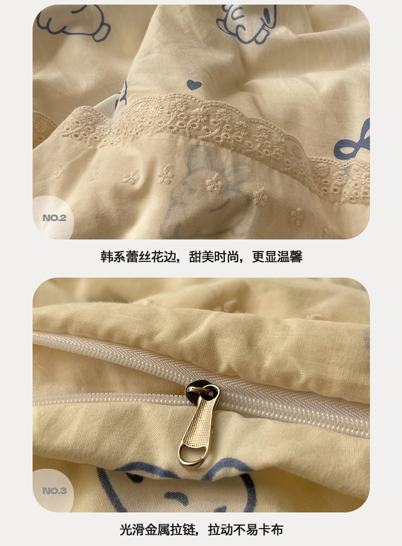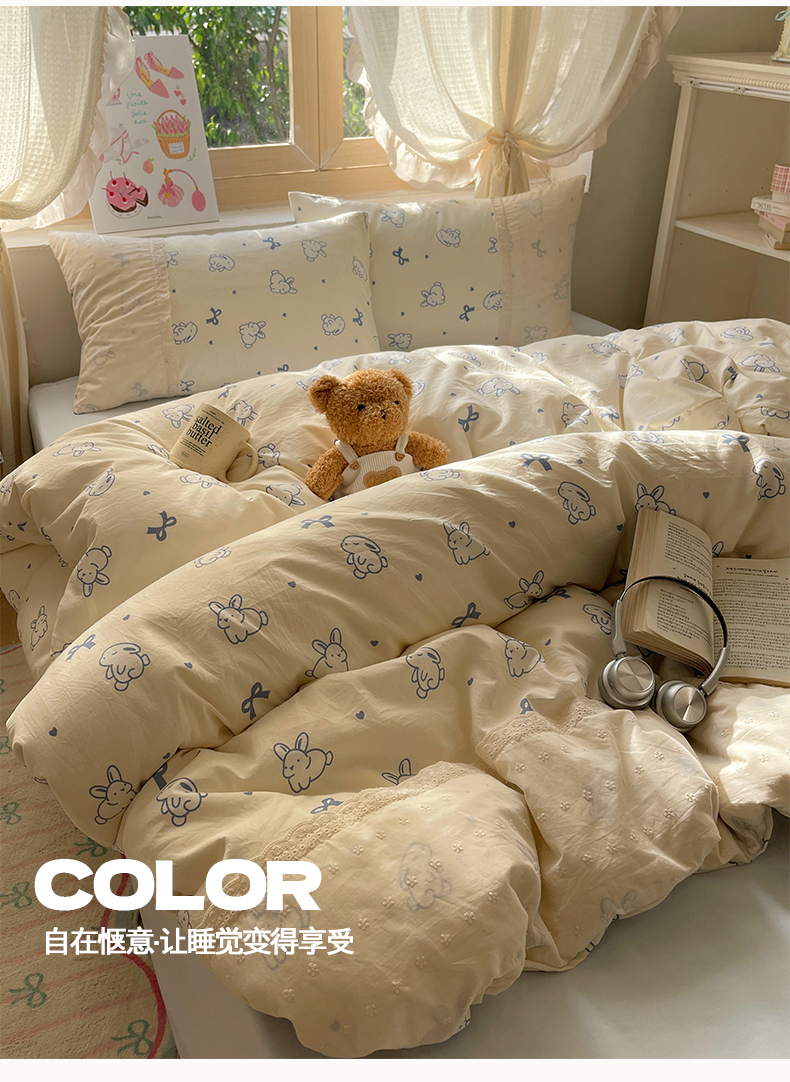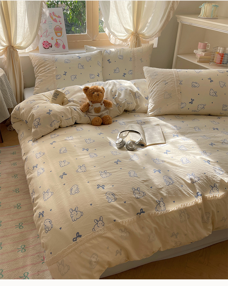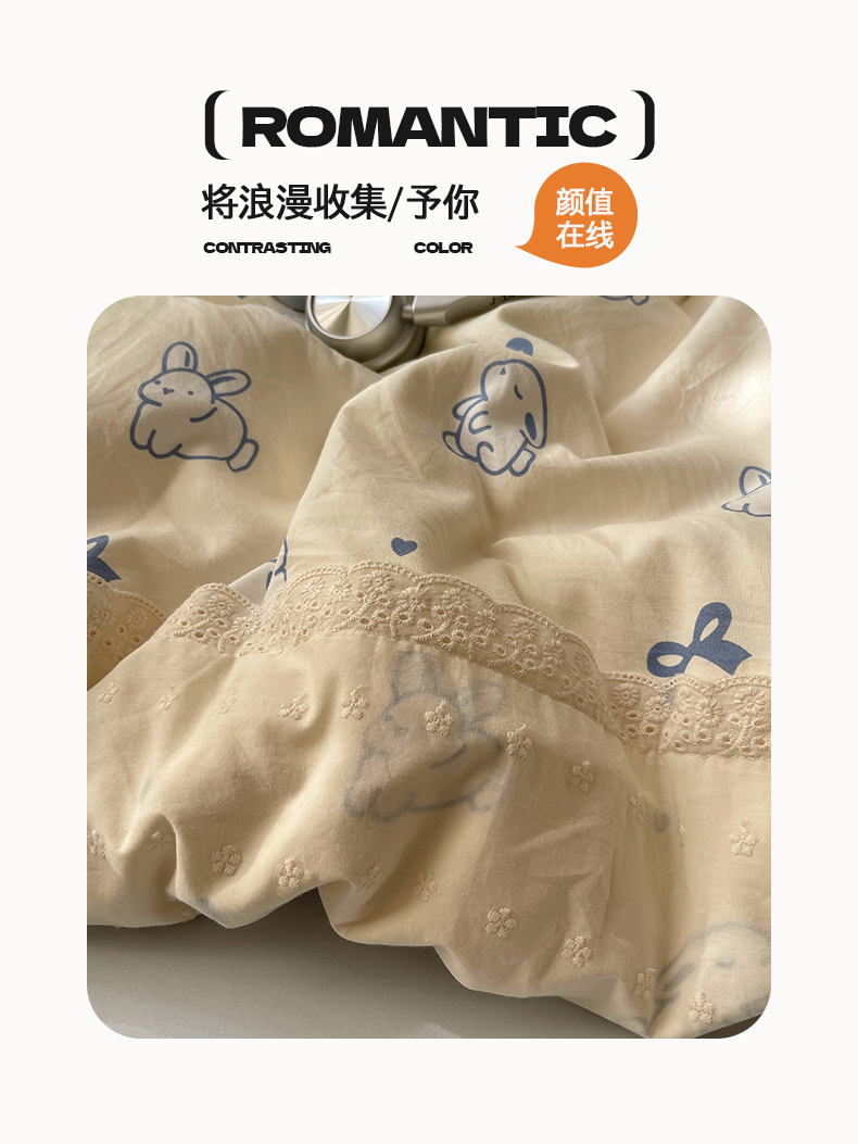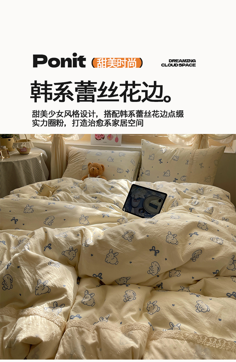 当前位置: 91家纺网 > 商品网购 > 床品套件 > 四件套 > 水洗棉四件套 > 桃心家居 2025新款云感水洗棉蕾丝花边四件套 水洗棉花边-蕾丝蓝小兔