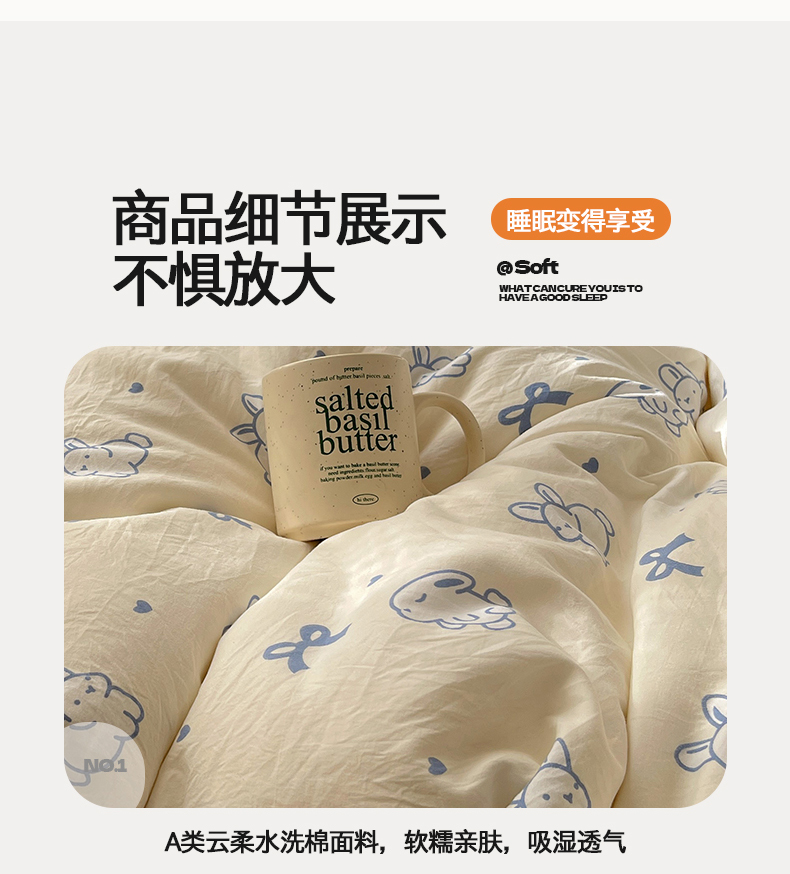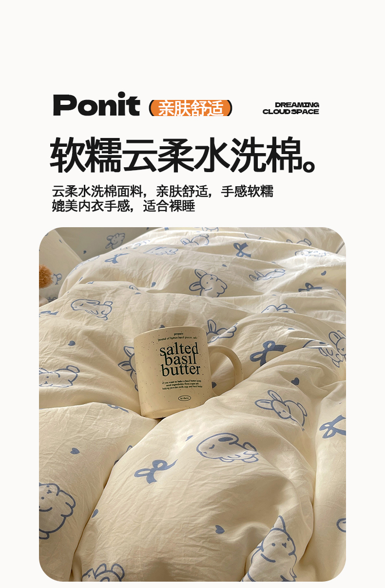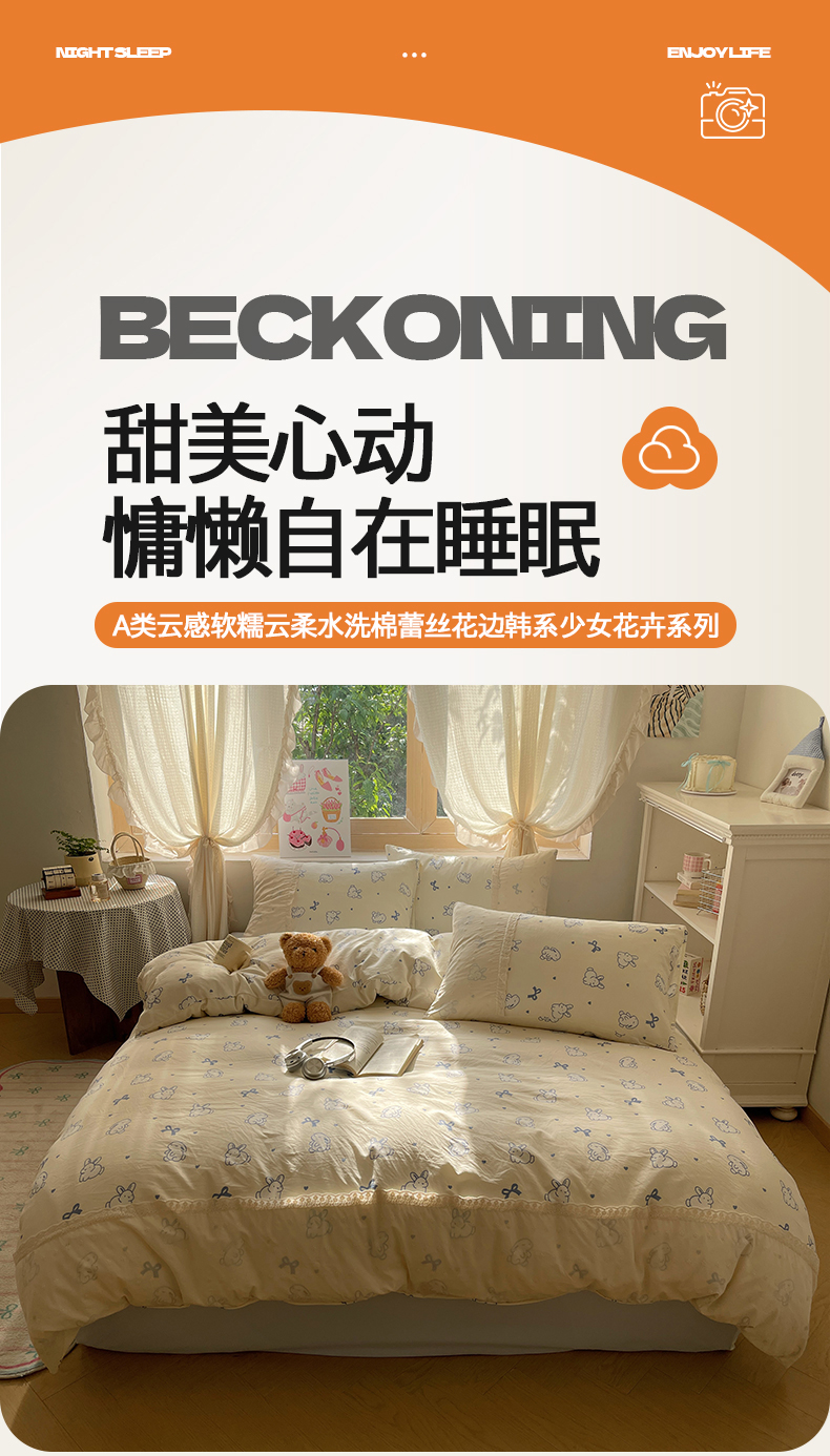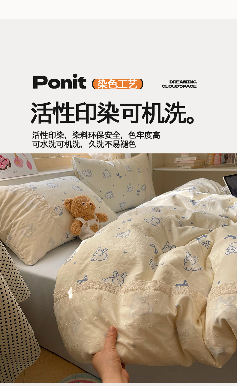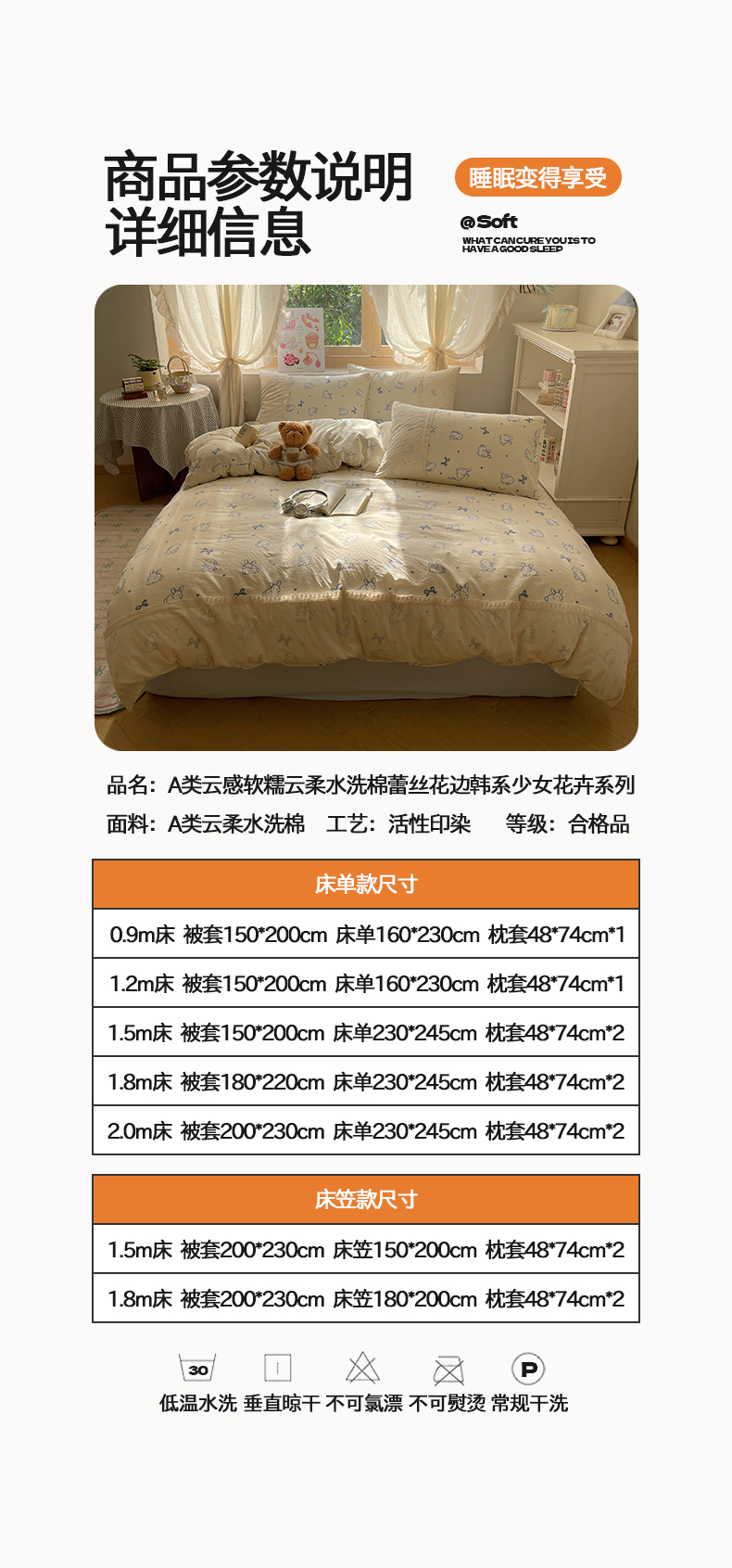 当前位置: 91家纺网 > 商品网购 > 床品套件 > 四件套 > 水洗棉四件套 > 桃心家居 2025新款云感水洗棉蕾丝花边四件套 水洗棉花边-蕾丝蓝小兔