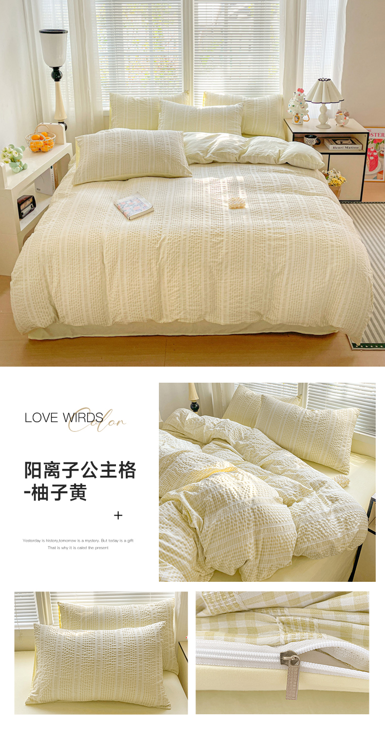 当前位置: 91家纺网 > 商品网购 > 床品套件 > 四件套 > 卡普家居 2025新款A类阳离子公主格四件套 阳离子公主格-柚子黄