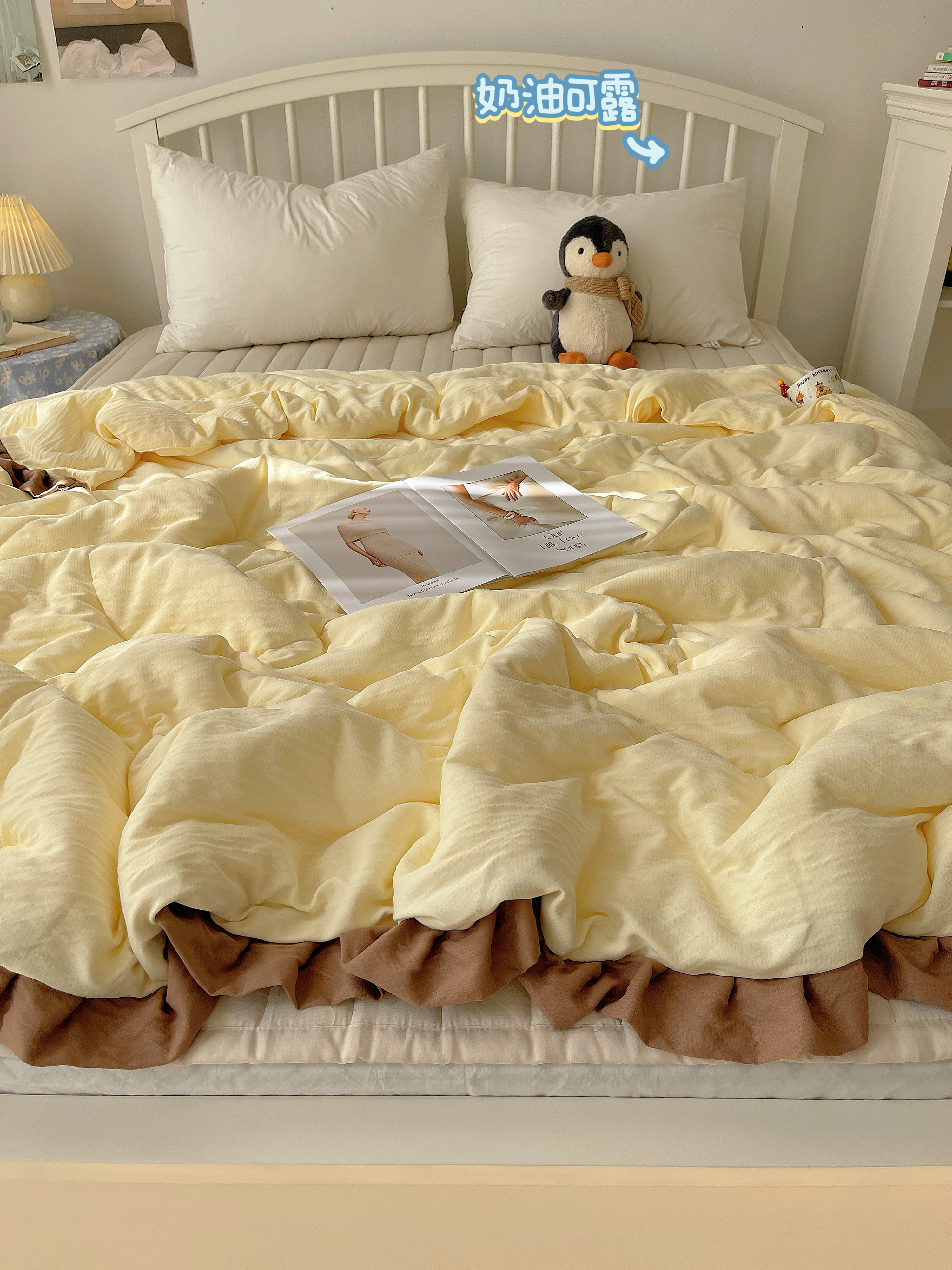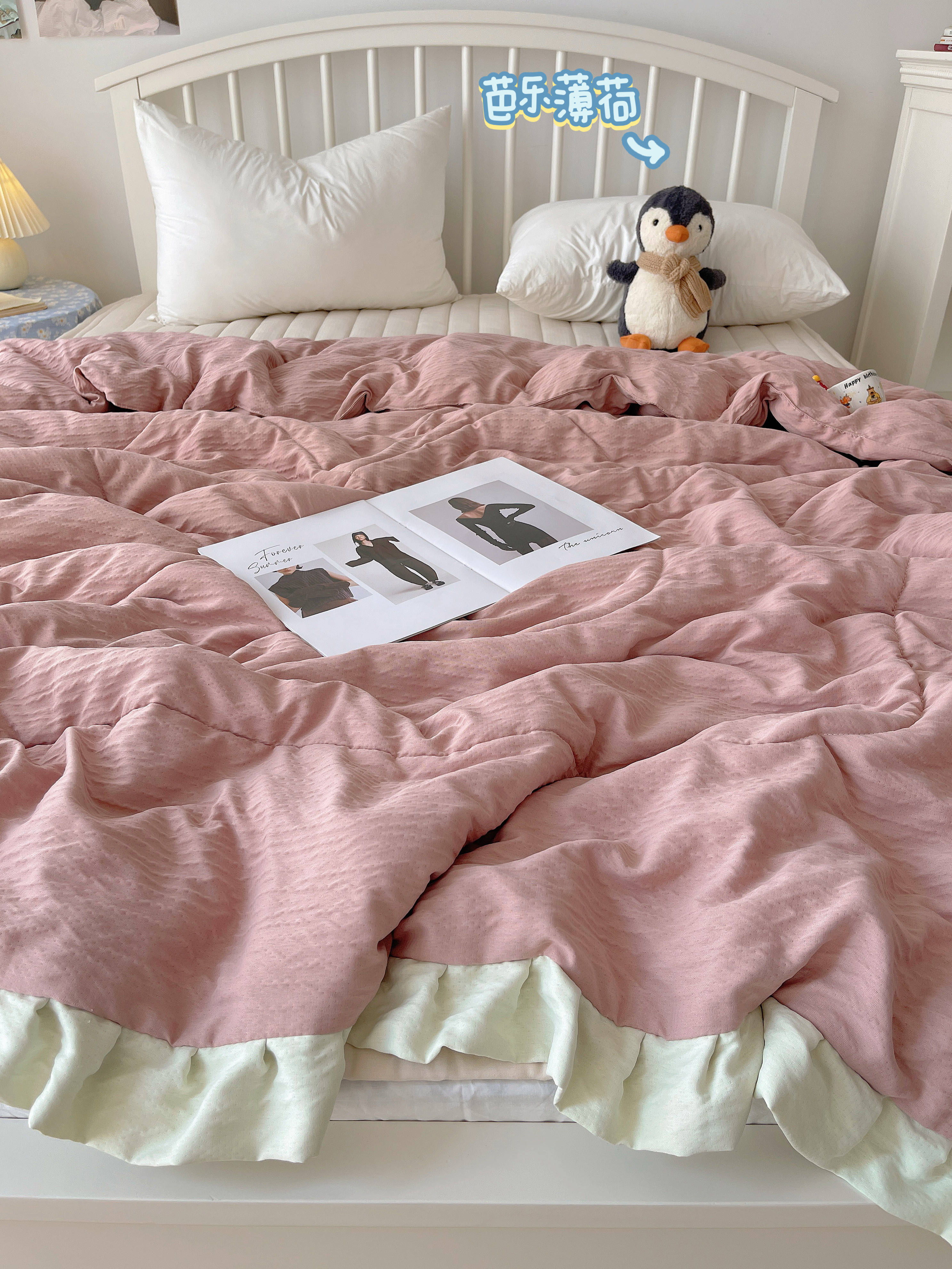 商品名称:顾里家纺 2025春夏新款韩系花边皱皱纱夏被夏凉被空调被 抹茶冰乐