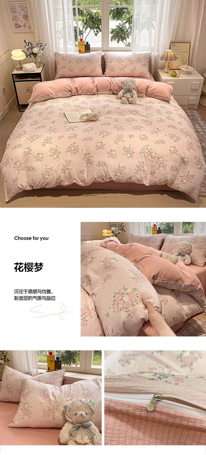当前位置: 91家纺网 > 商品网购 > 床品套件 > 四件套 > 全棉普通四件套 > 王朝国际 2026爆款皱皱双层纱四件套花樱梦