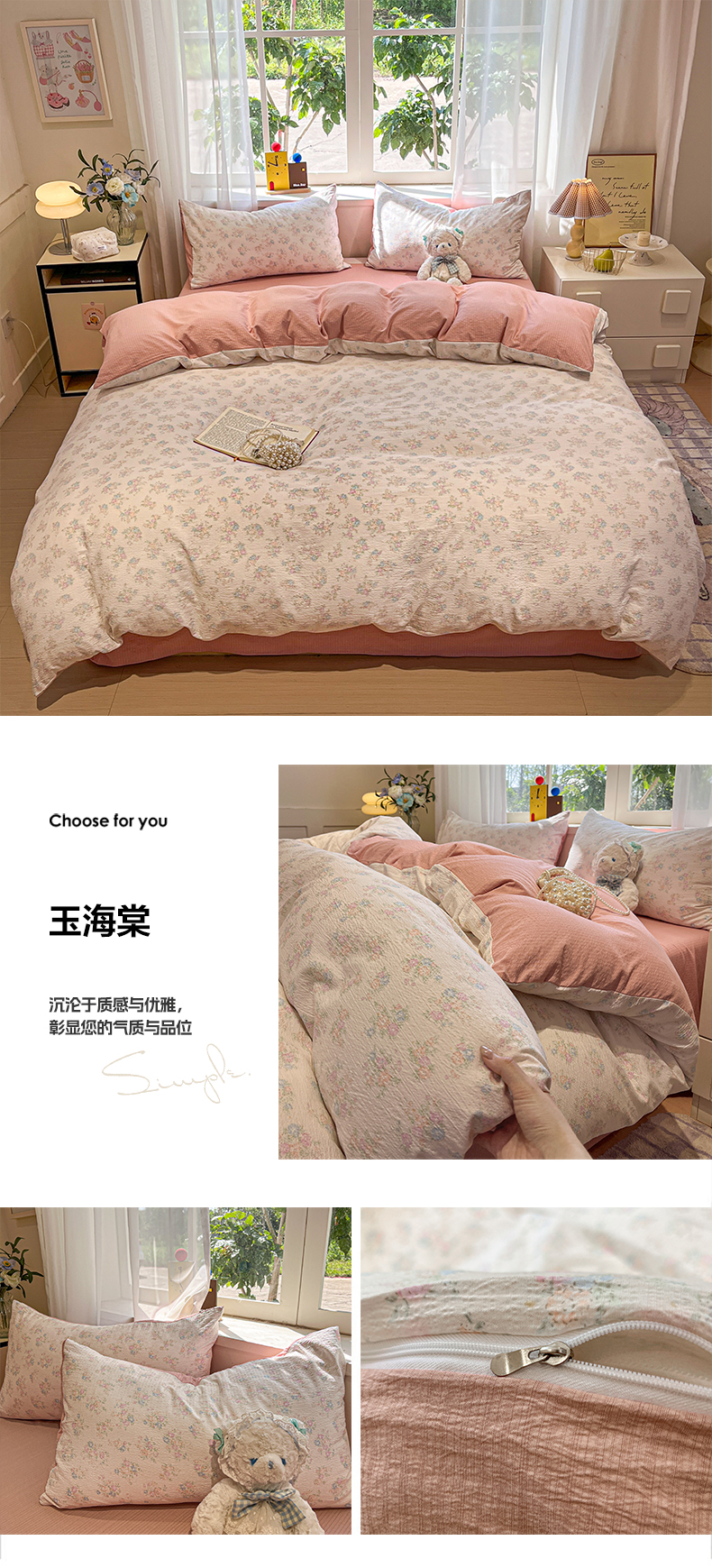 当前位置: 91家纺网 > 商品网购 > 床品套件 > 四件套 > 全棉普通四件套 > 王朝国际 2026爆款皱皱双层纱四件套玉海棠