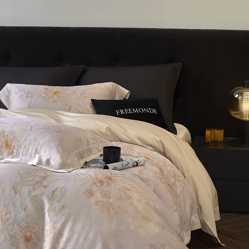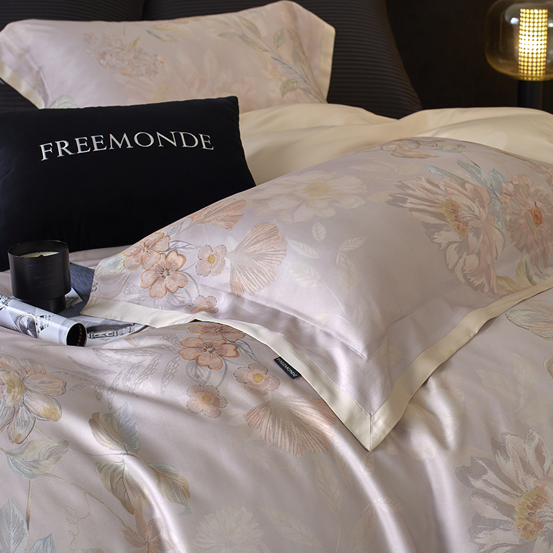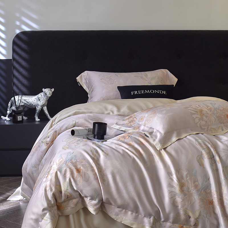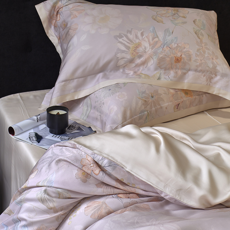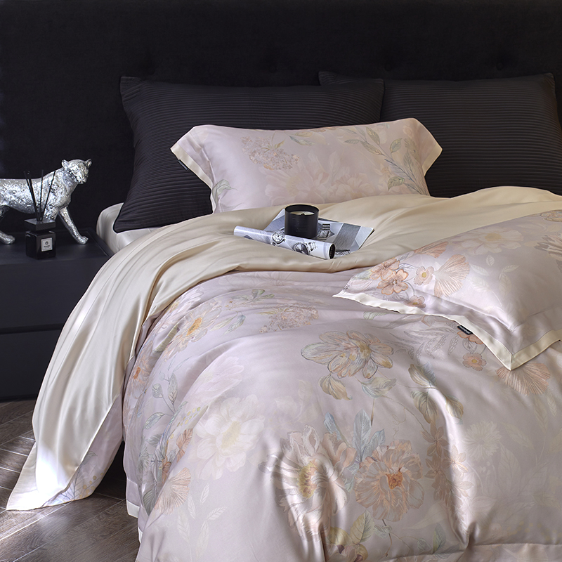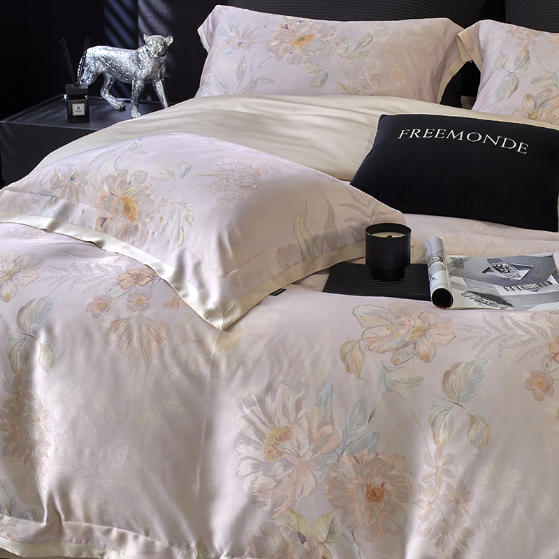 蕾诺家纺 2025新款60支进口奥地利兰精天丝数码印花四件套 挽风-芋泥