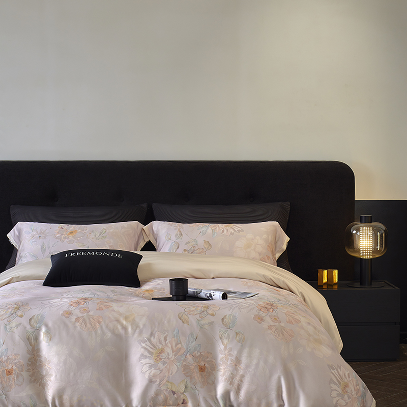 商品名称:蕾诺家纺 2025新款60支进口奥地利兰精天丝数码印花四件套 挽风-芋泥