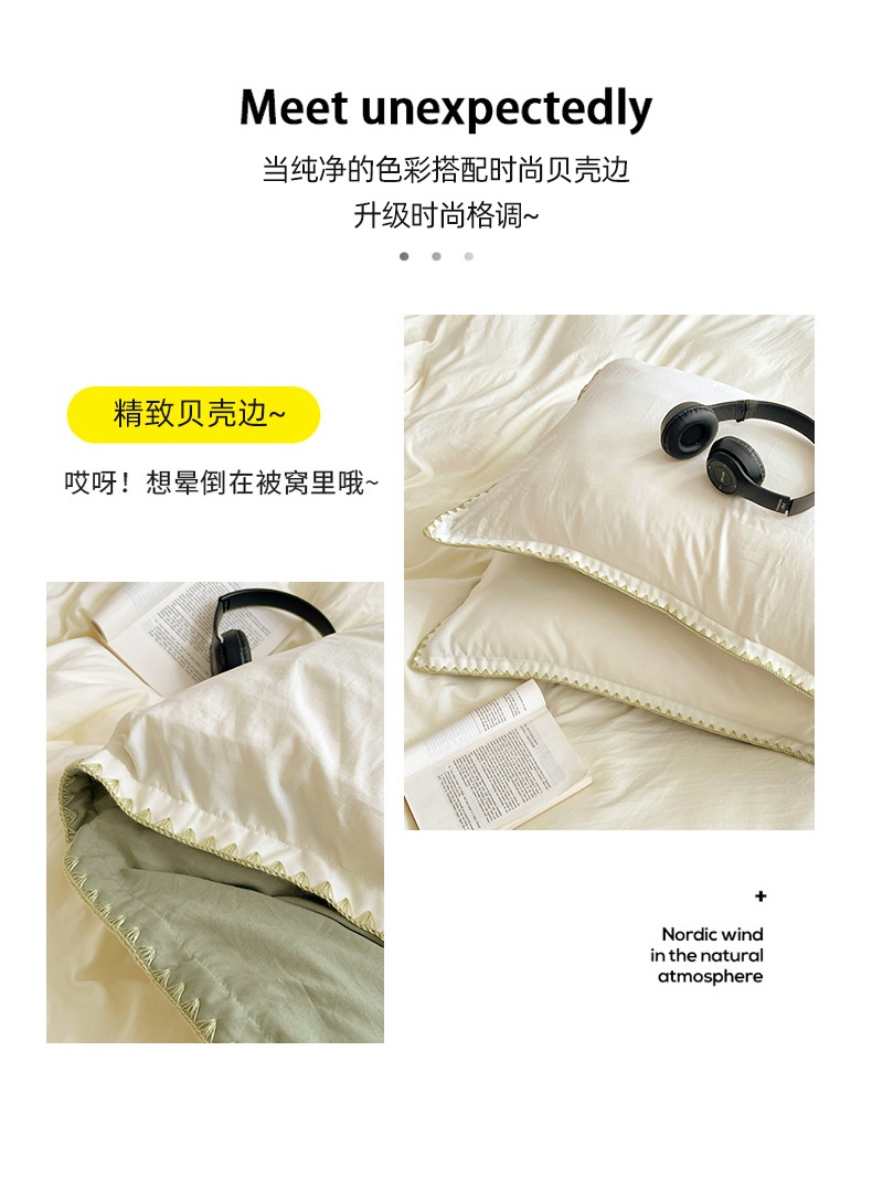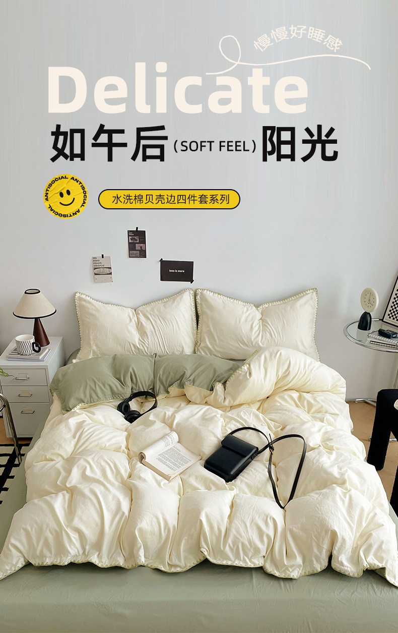 当前位置: 91家纺网 > 商品网购 > 床品套件 > 四件套 > 水洗棉四件套 > 思诺羽床笠 2025新款水洗棉贝壳边四件套系列 贝壳边-贝壳白+抹茶绿