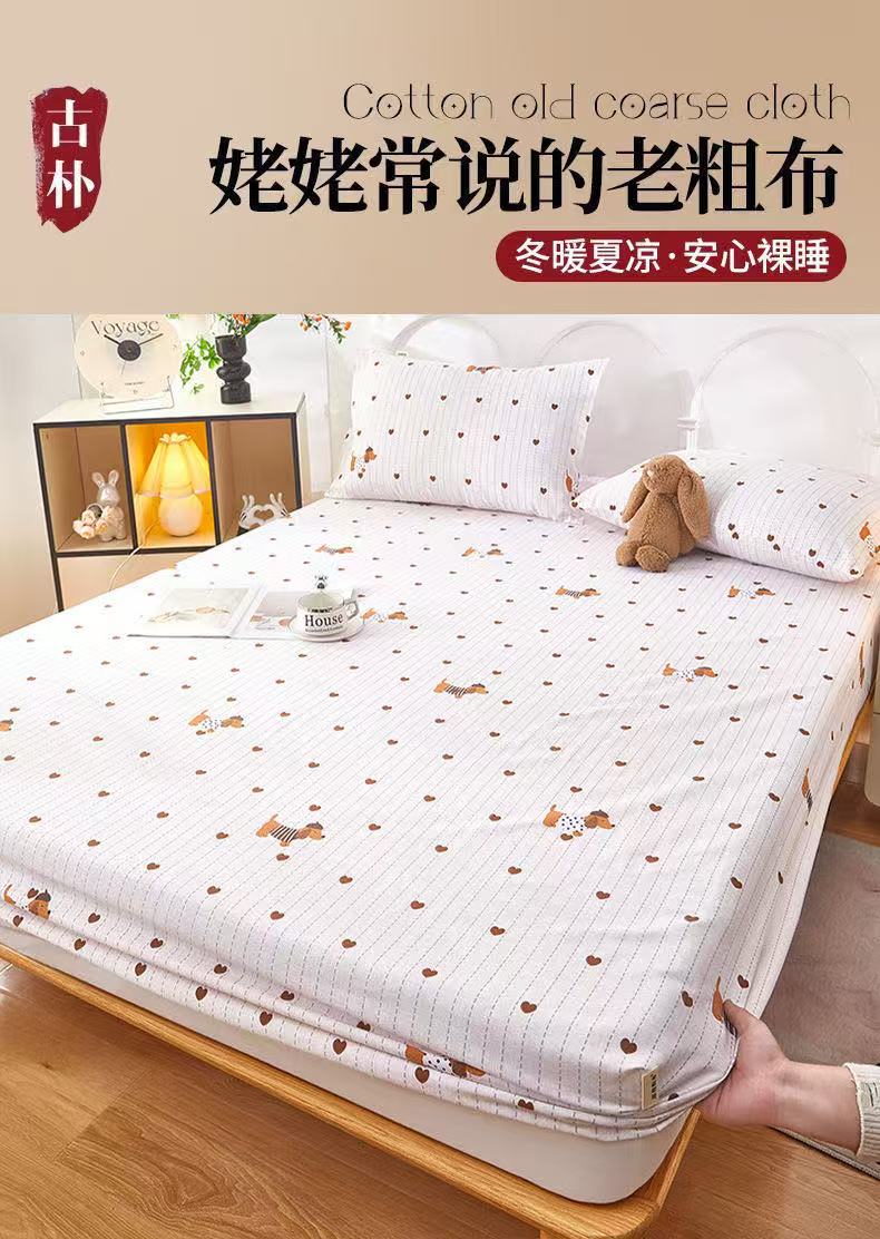 • 91家纺网 家纺一手货源 找家纺 希廷顿 2025新款床笠款原棉老粗布凉席席子 蔷馨