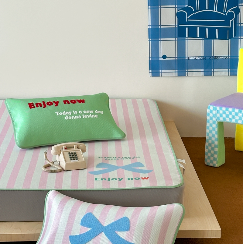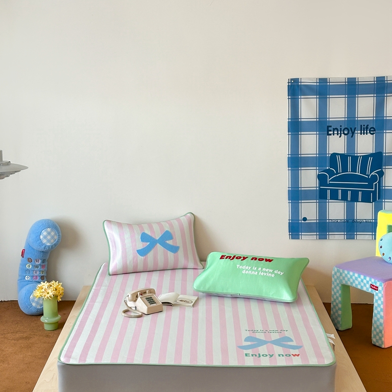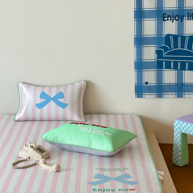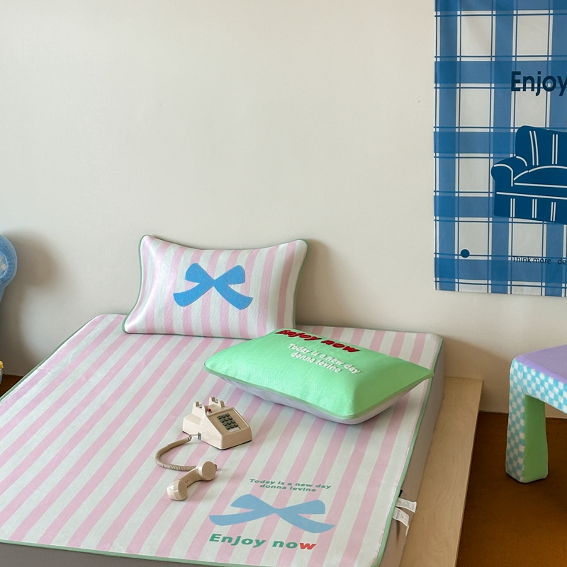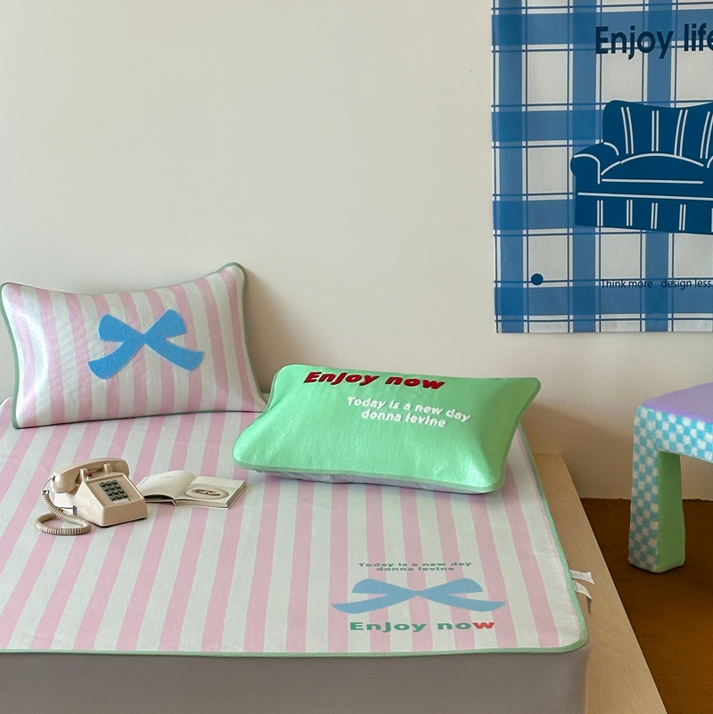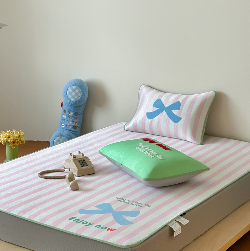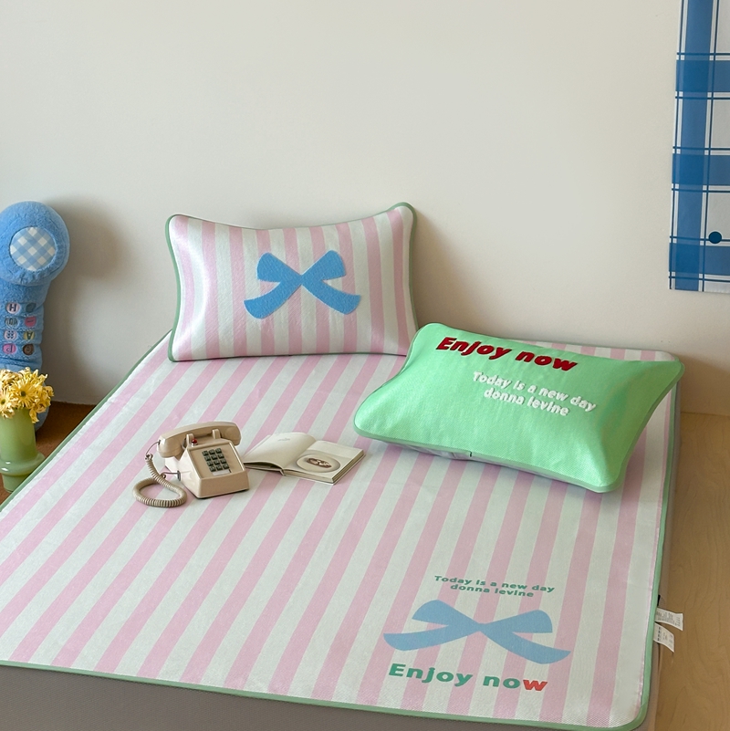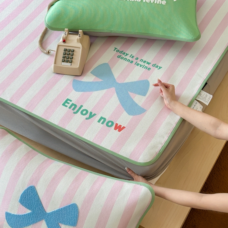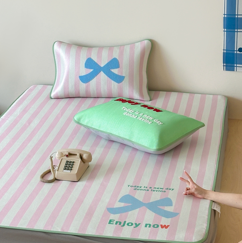 商品名称:觅糖2025新款ins冰藤席毛巾绣凉席 蝴蝶结日记