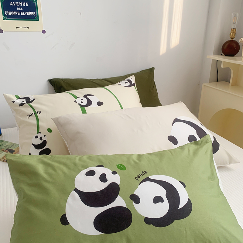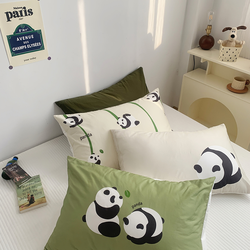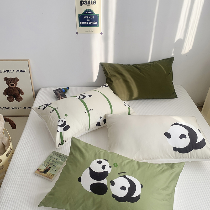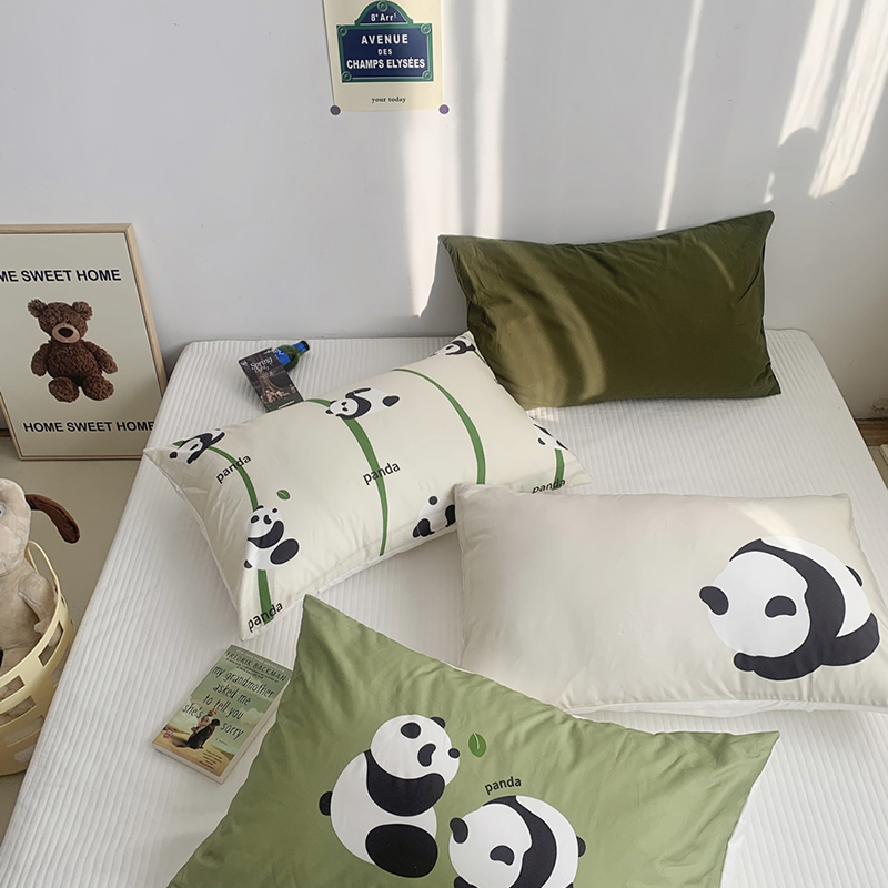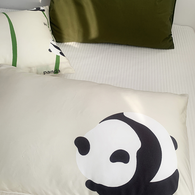 柚可家居 2024新款数码定版全棉单枕套系列-panda 条纹panda
