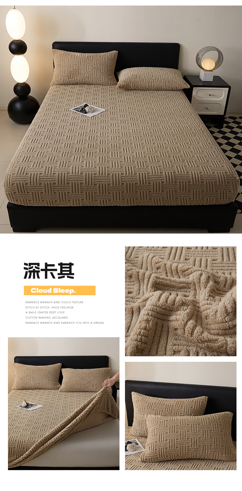 • 91家纺网 家纺一手货源 找家纺 欧邦2025新款提花舒棉绒塔芙绒床笠跨境-场景一 深卡其