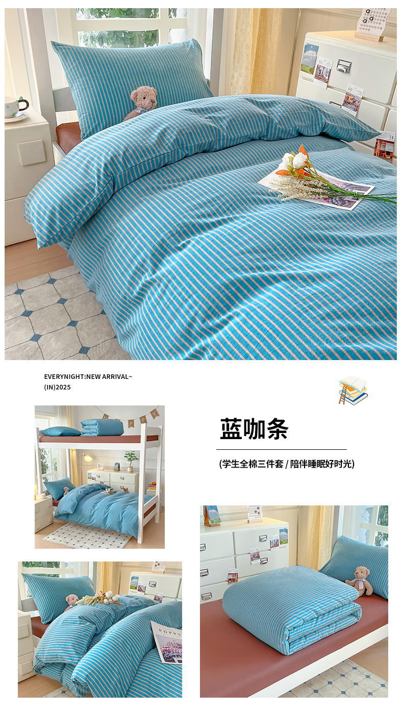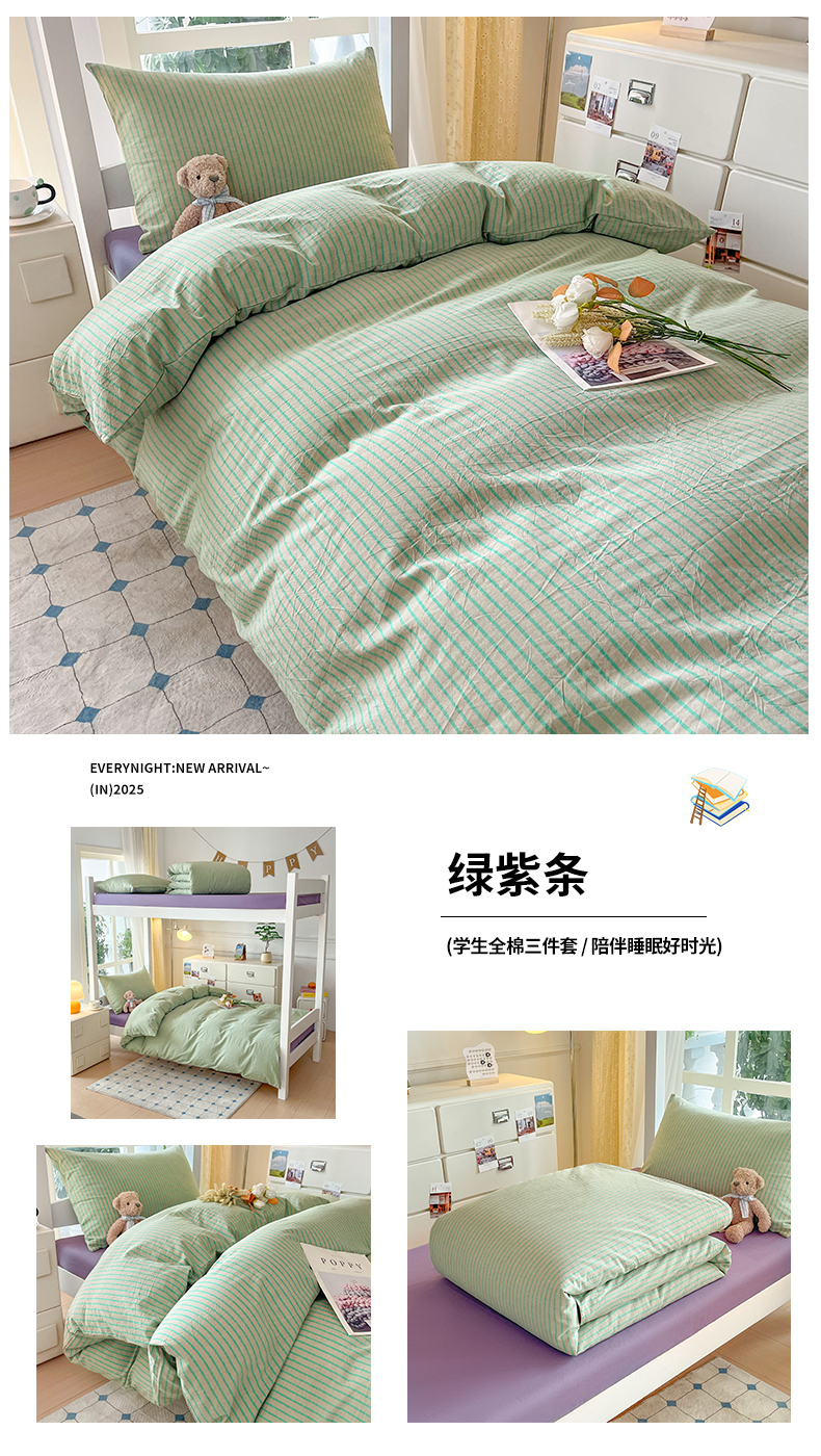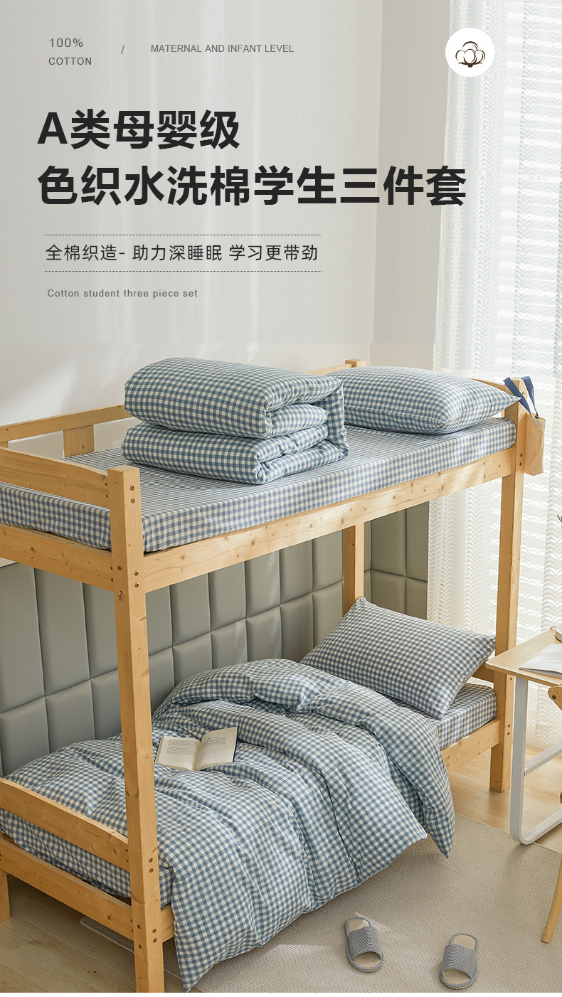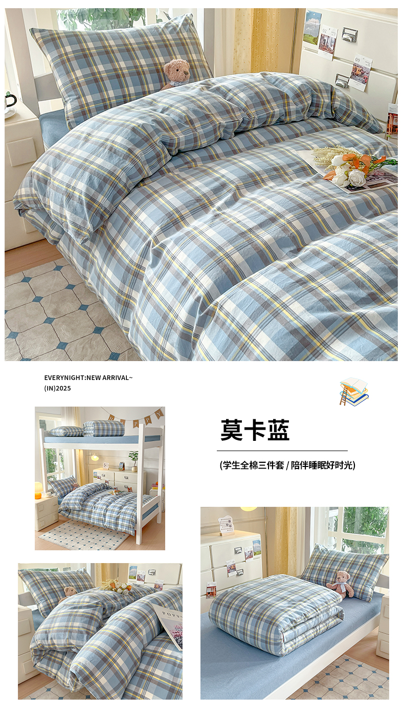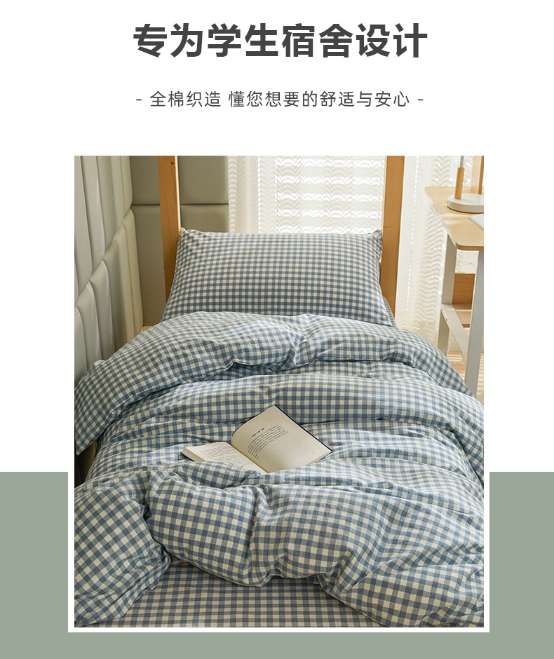 当前位置: 91家纺网 > 商品网购 > 床品套件 > 三件套 > 柠萌家居 2025年最新款学生宿舍全棉无印风A类良品宿舍上下铺三件套 小兰格