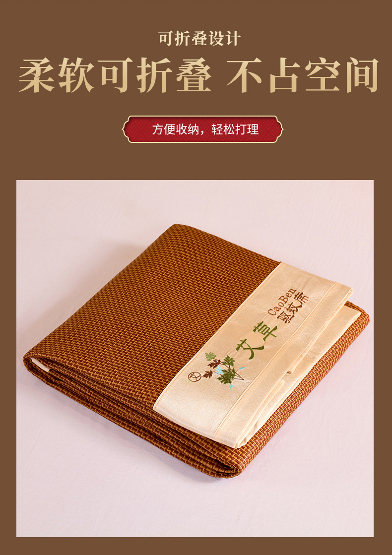 商品名称:莱家富 2025新款双面艾草刺绣藤席套件 双面席饼干花