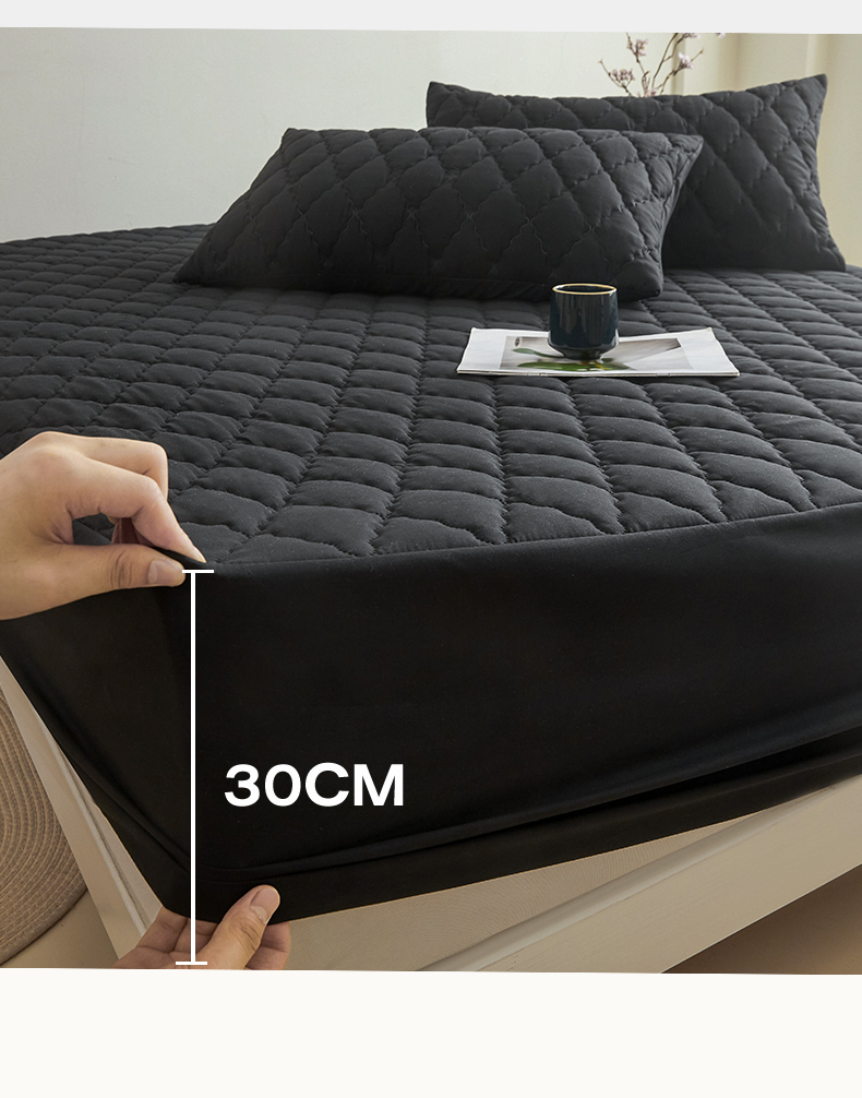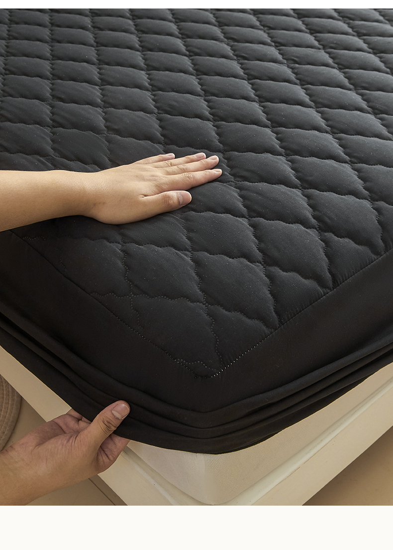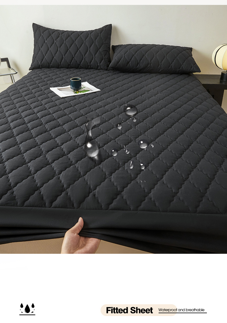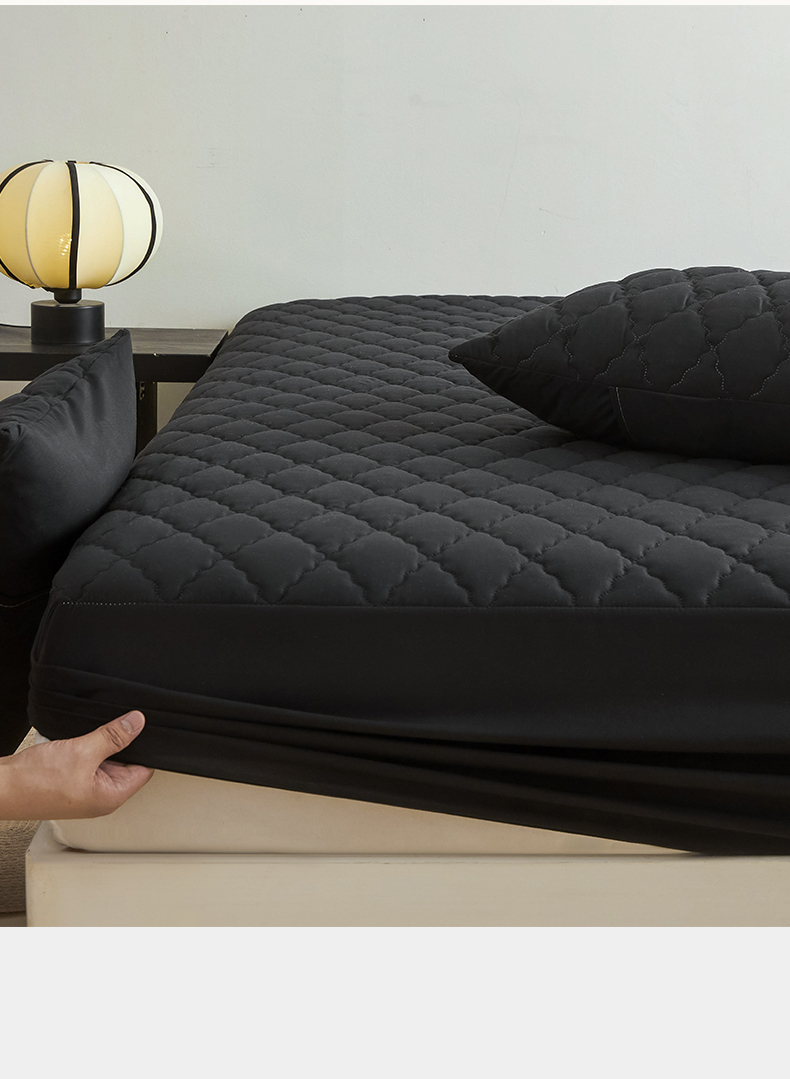 雯豆家纺 2025新品外贸亚马逊纯色防水夹棉床笠跨境电商速卖通床罩可定制尺寸 菱形格防水床笠-黑色