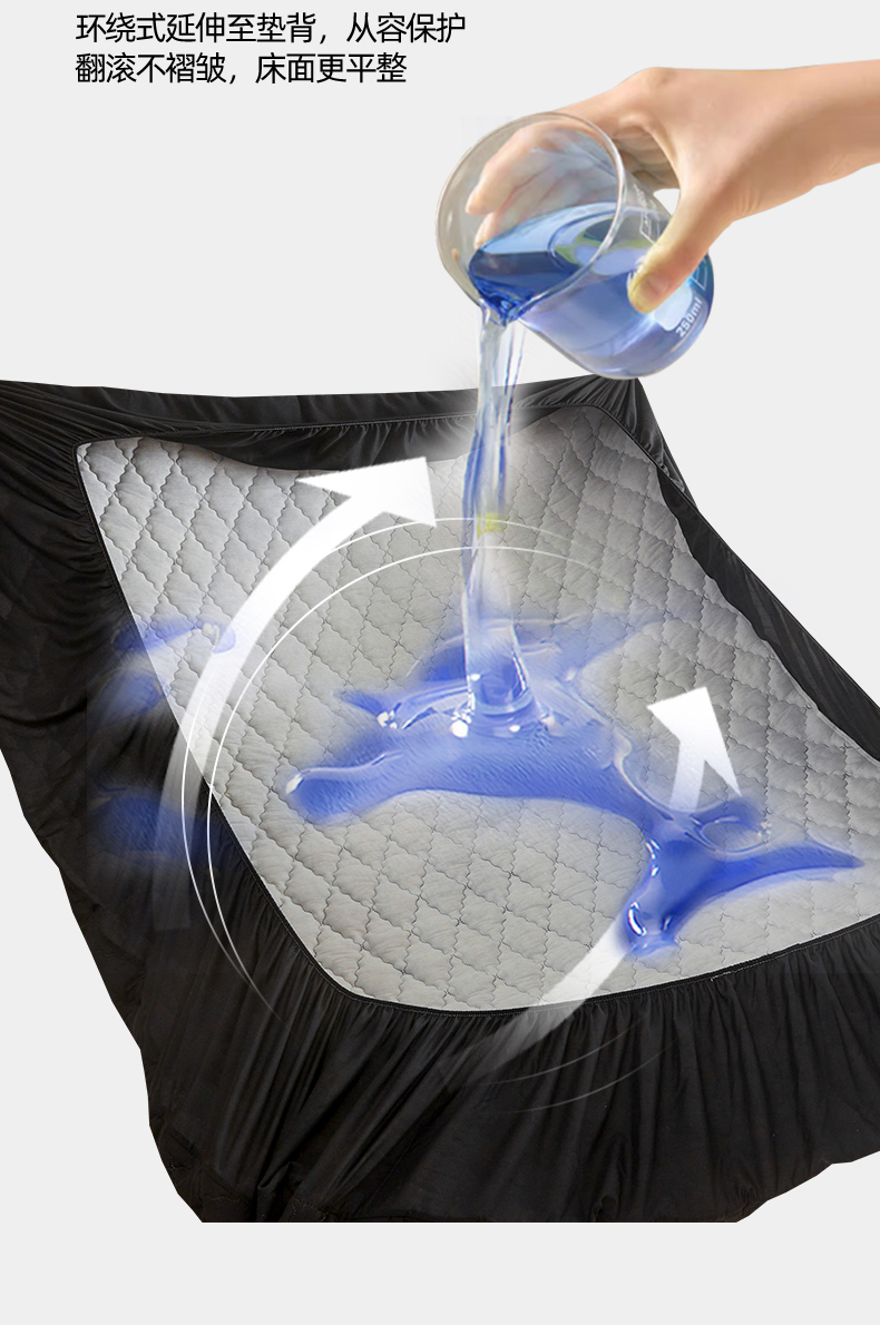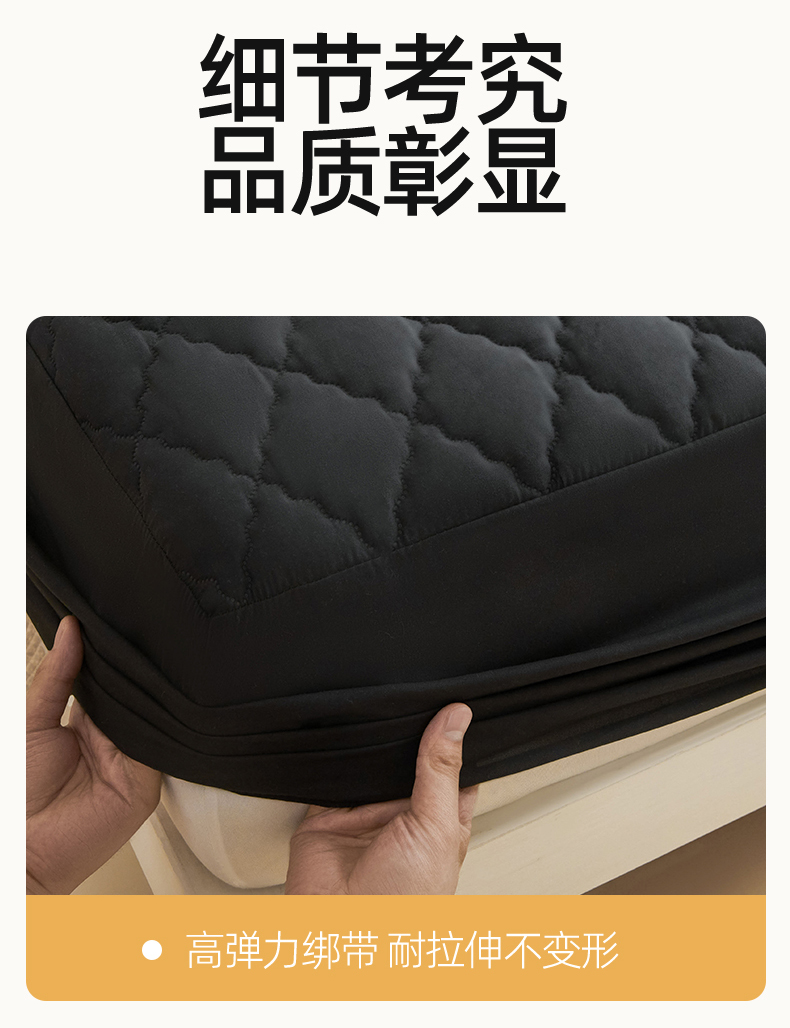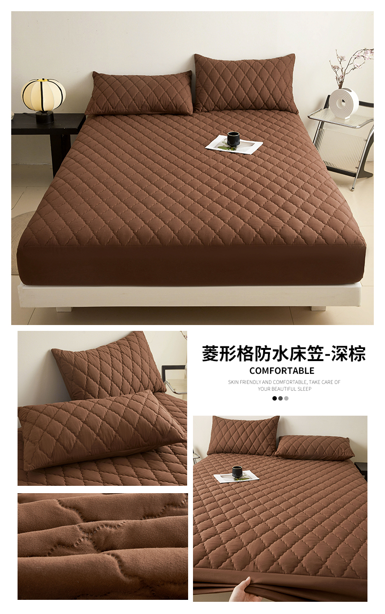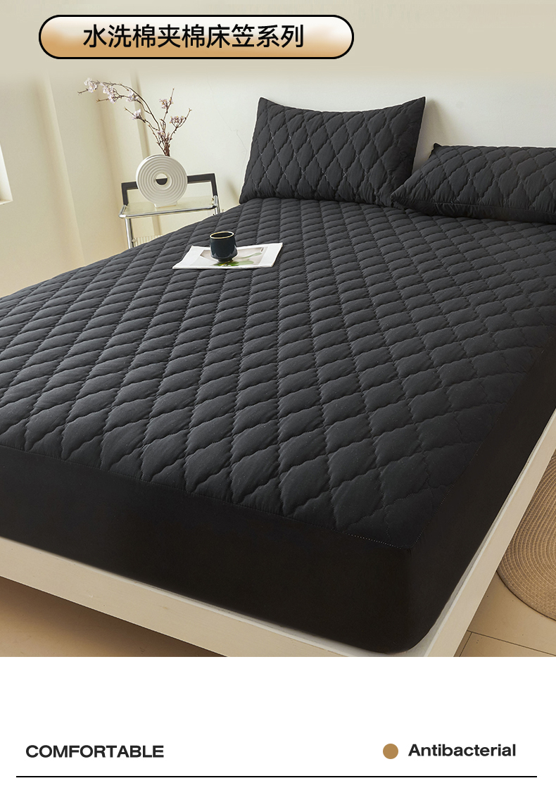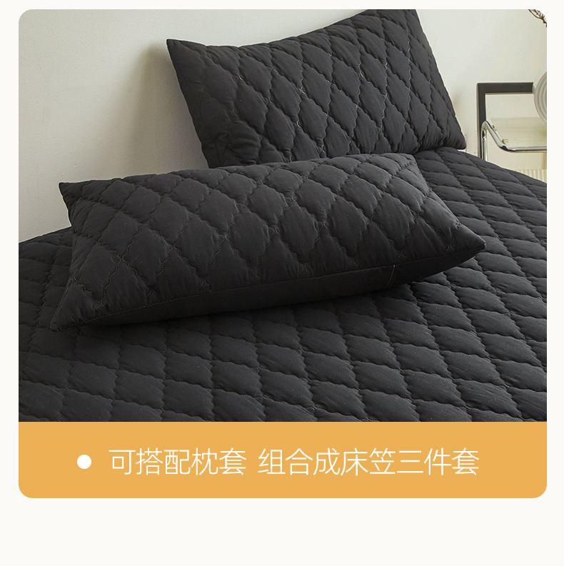 • 91家纺网 家纺一手货源 找家纺 雯豆家纺 2025新品外贸亚马逊纯色防水夹棉床笠跨境电商速卖通床罩可定制尺寸 菱形格防水床笠-黑色