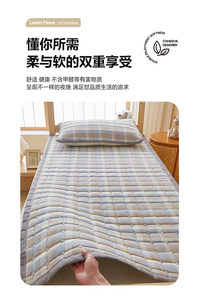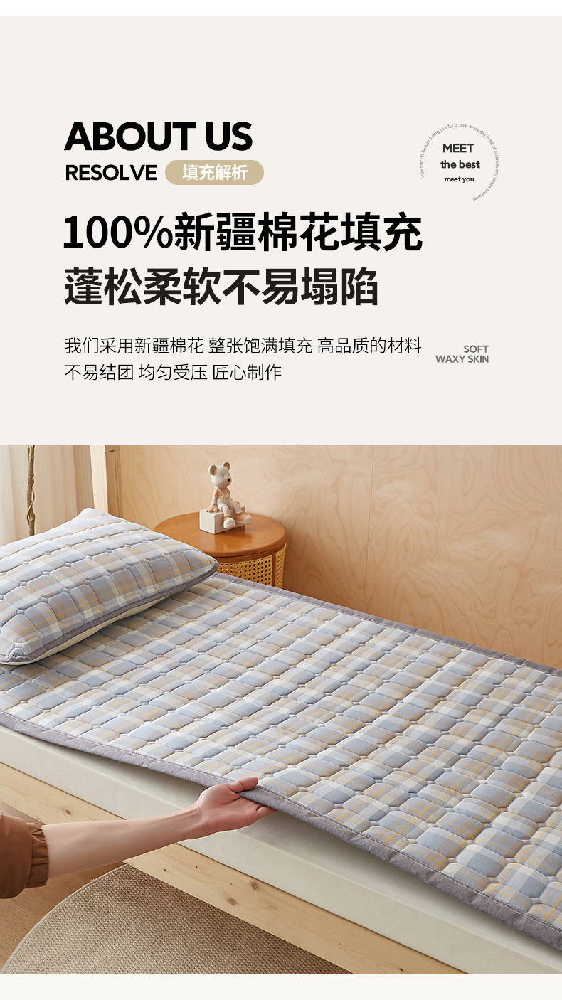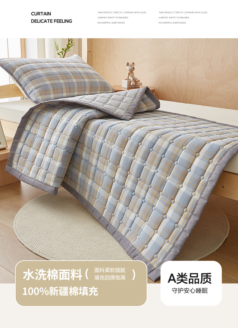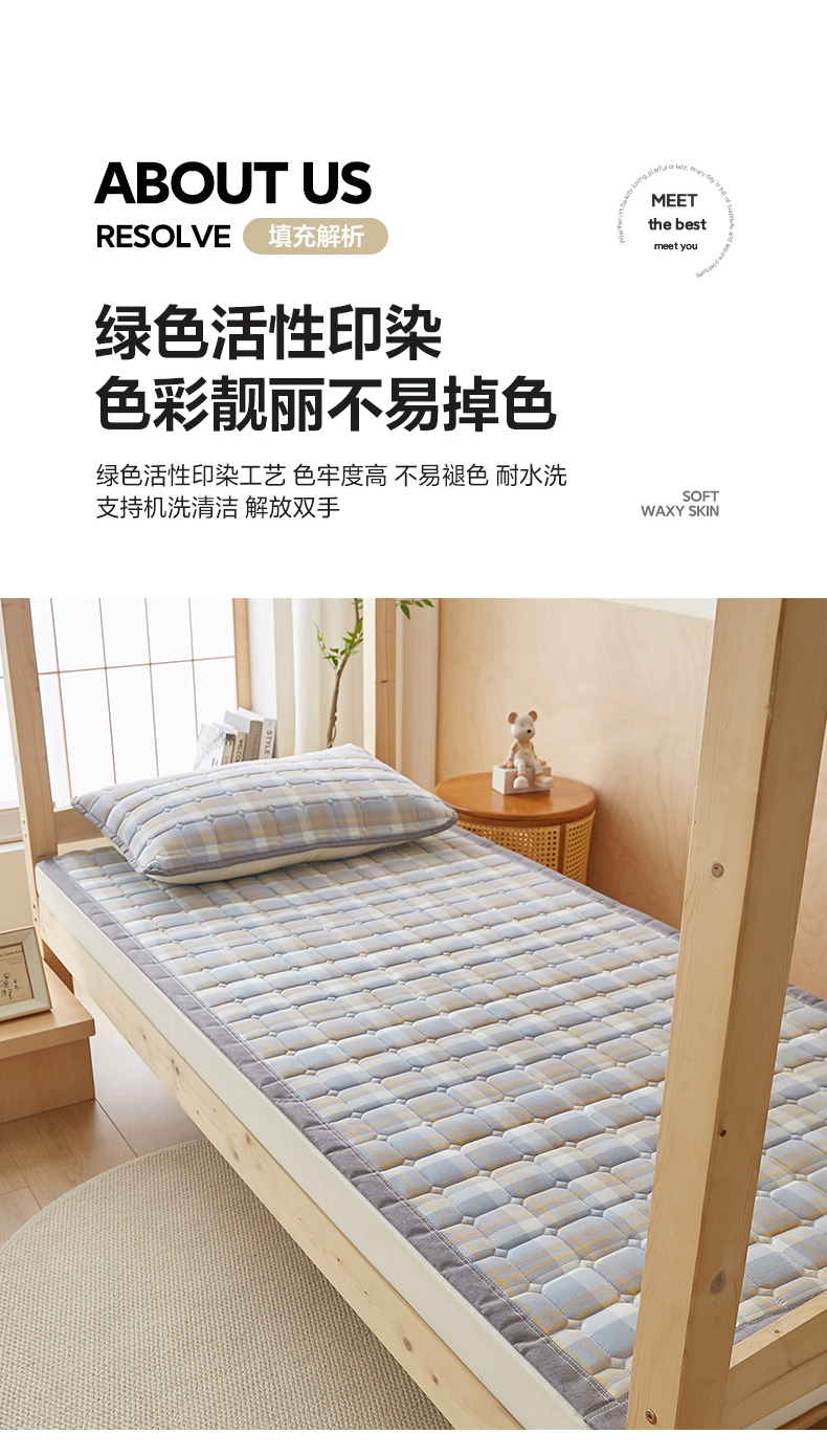 • 91家纺网 家纺一手货源 找家纺 暖季家纺 2025新款A类水洗棉学生絮叠床护垫 絮叠床护垫-简兮蓝