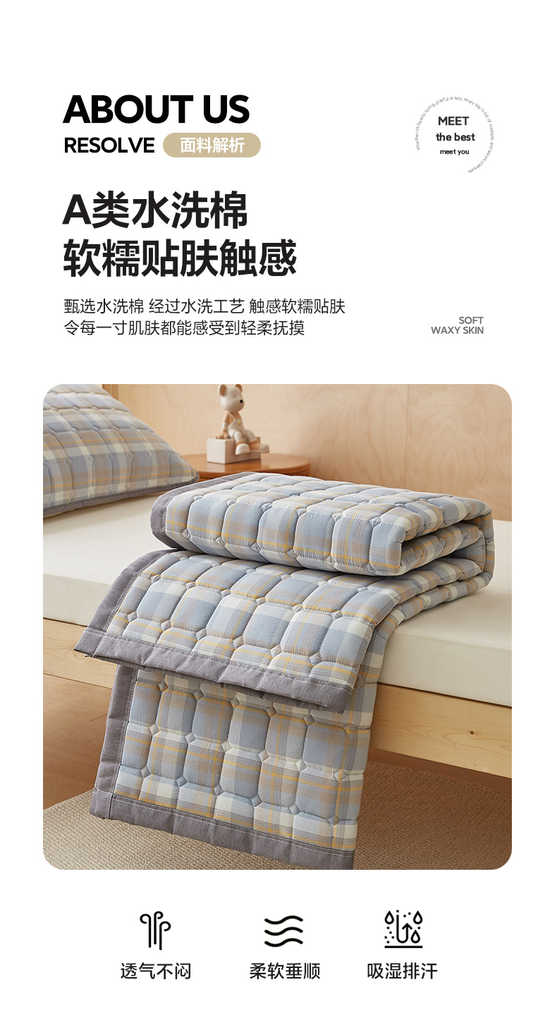 暖季家纺 2025新款A类水洗棉学生絮叠床护垫 絮叠床护垫-简兮蓝