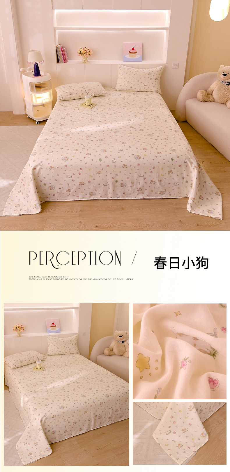 • 91家纺网 家纺一手货源 找家纺 DoDo 兜兜 2025新款全棉纯棉小温暖双层纱系列单床单【可定做尺寸】 春日小狗