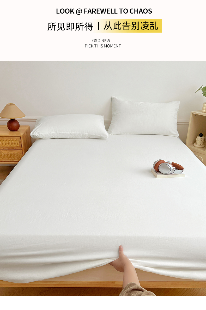 • 91家纺网 家纺一手货源 找家纺 彩韵家纺 2025新款亲肤舒适水洗m单床笠 珍珠白