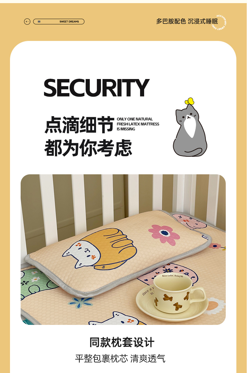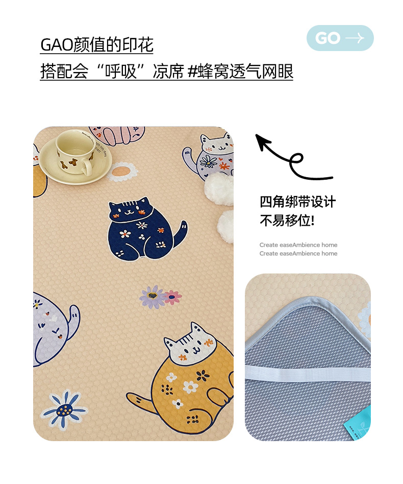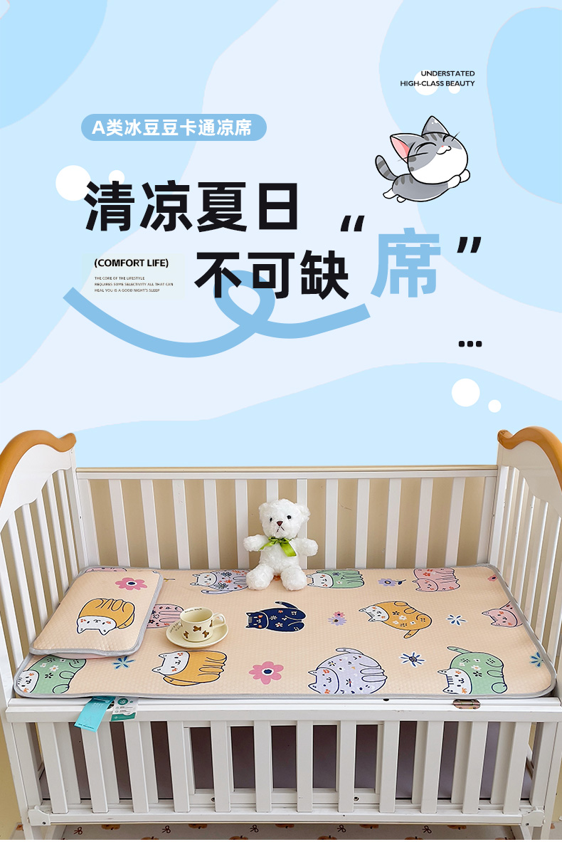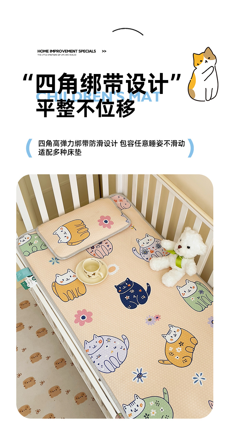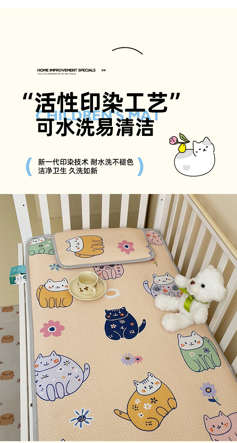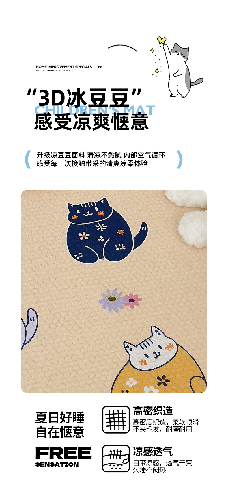 小叮当家纺仓储工厂店 (提供买家秀 爆款花型 不断货)2025新款冰豆豆儿童卡通凉席床席 小猫