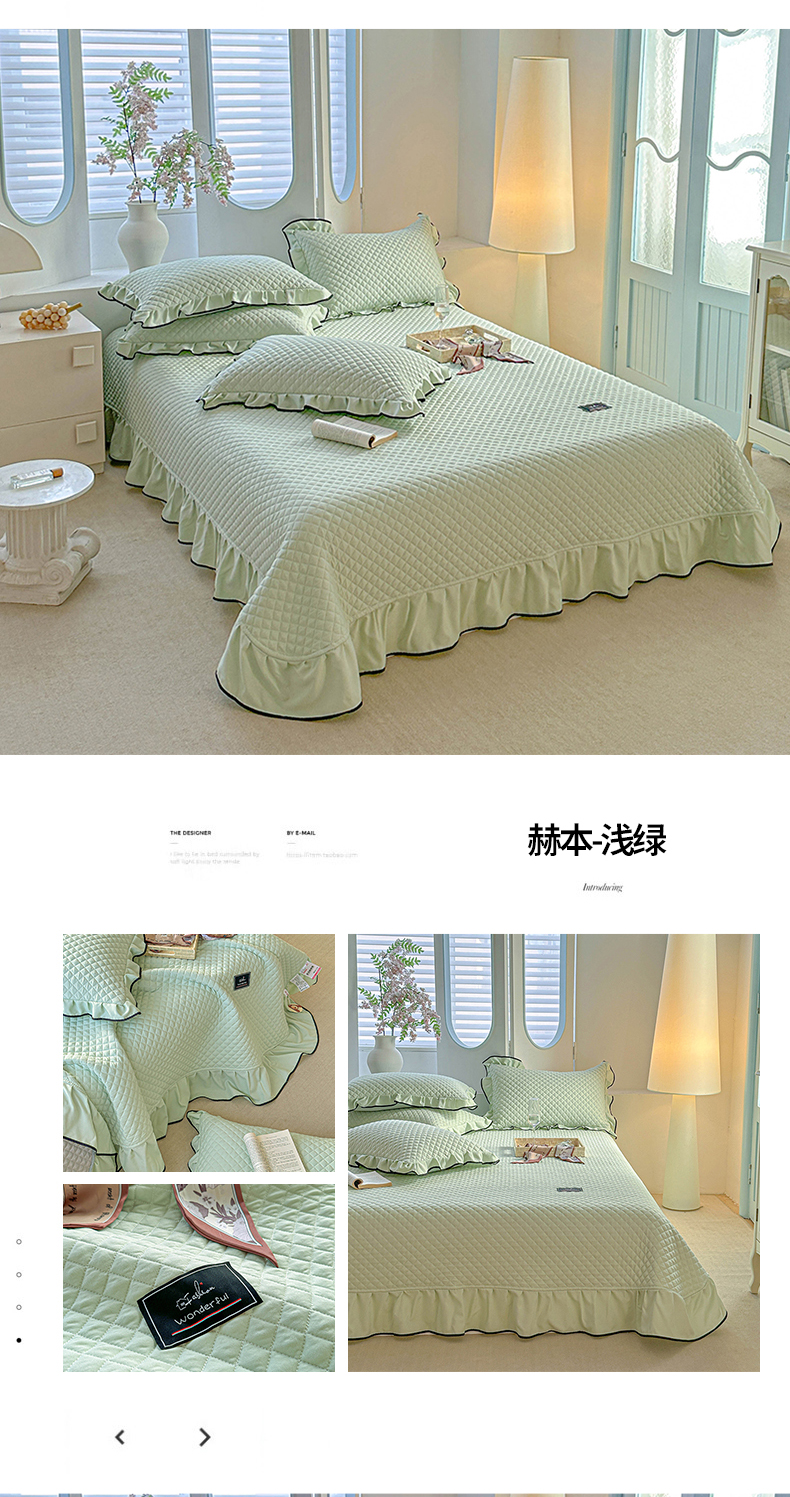 • 91家纺网 家纺一手货源 找家纺 源舜家纺 2025新款针织赫本风仿棉黑丝花边床盖三件套 赫本-浅绿