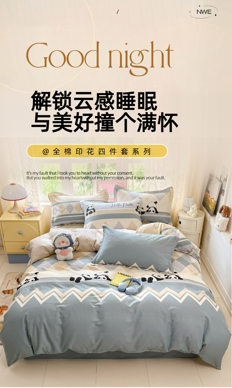 当前位置: 91家纺网 > 商品网购 > 床品套件 > 四件套 > 全棉普通四件套 > 莱通家纺 2025春夏新款12868纯棉印花四件套-系列二(商家提供买家秀) 新格拉