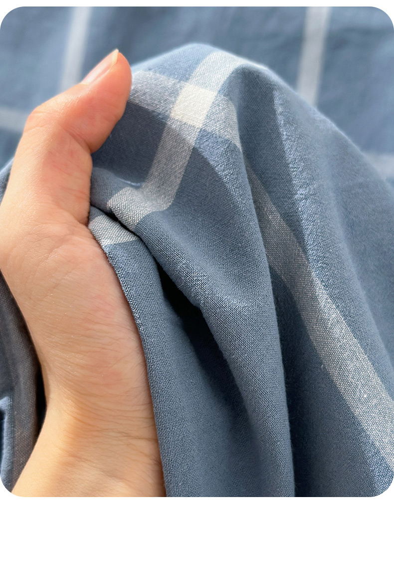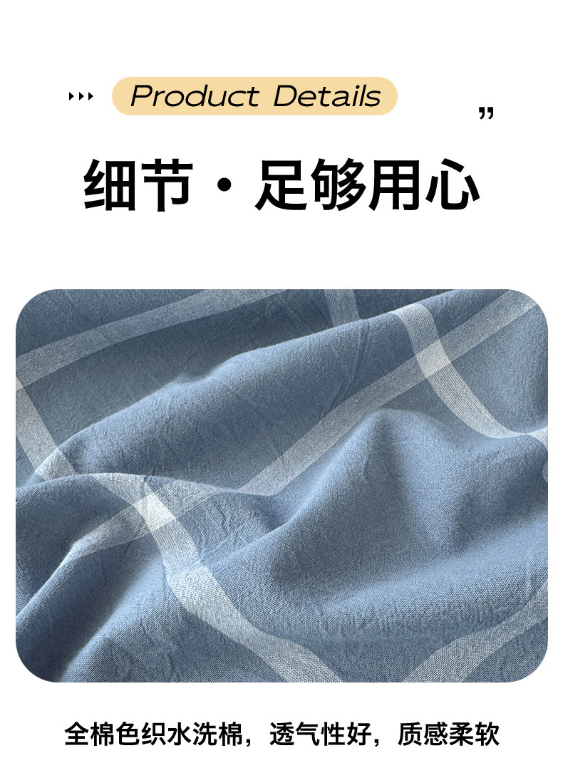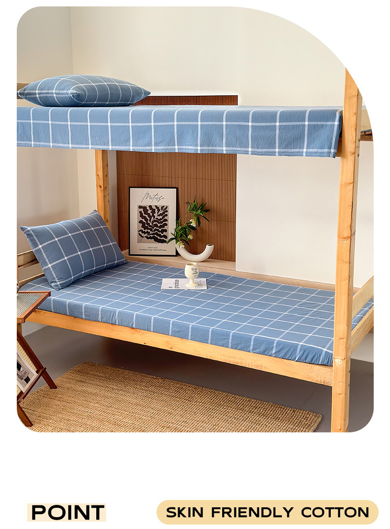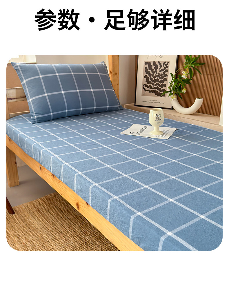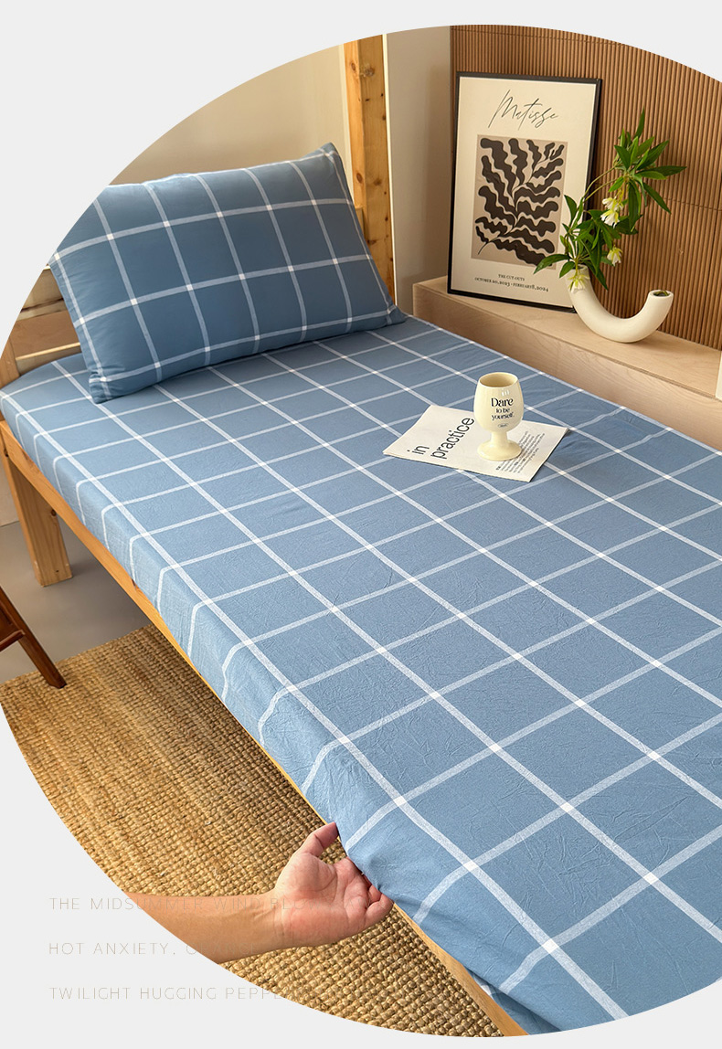• 91家纺网 家纺一手货源 找家纺 北欧良品2025新款色织水洗棉学生单品床笠 纯棉-海蓝大格