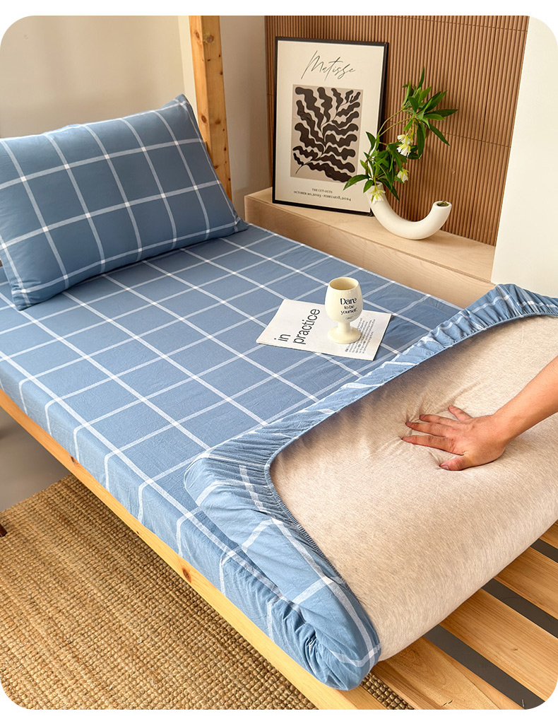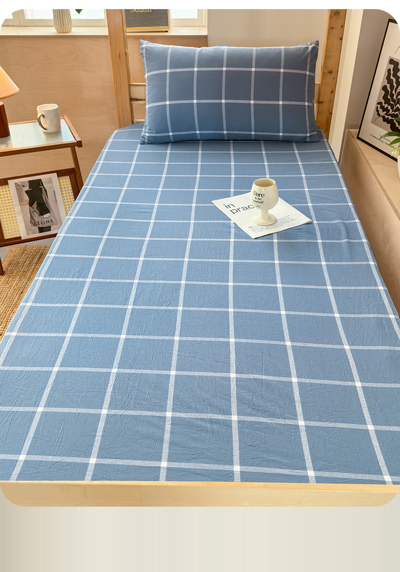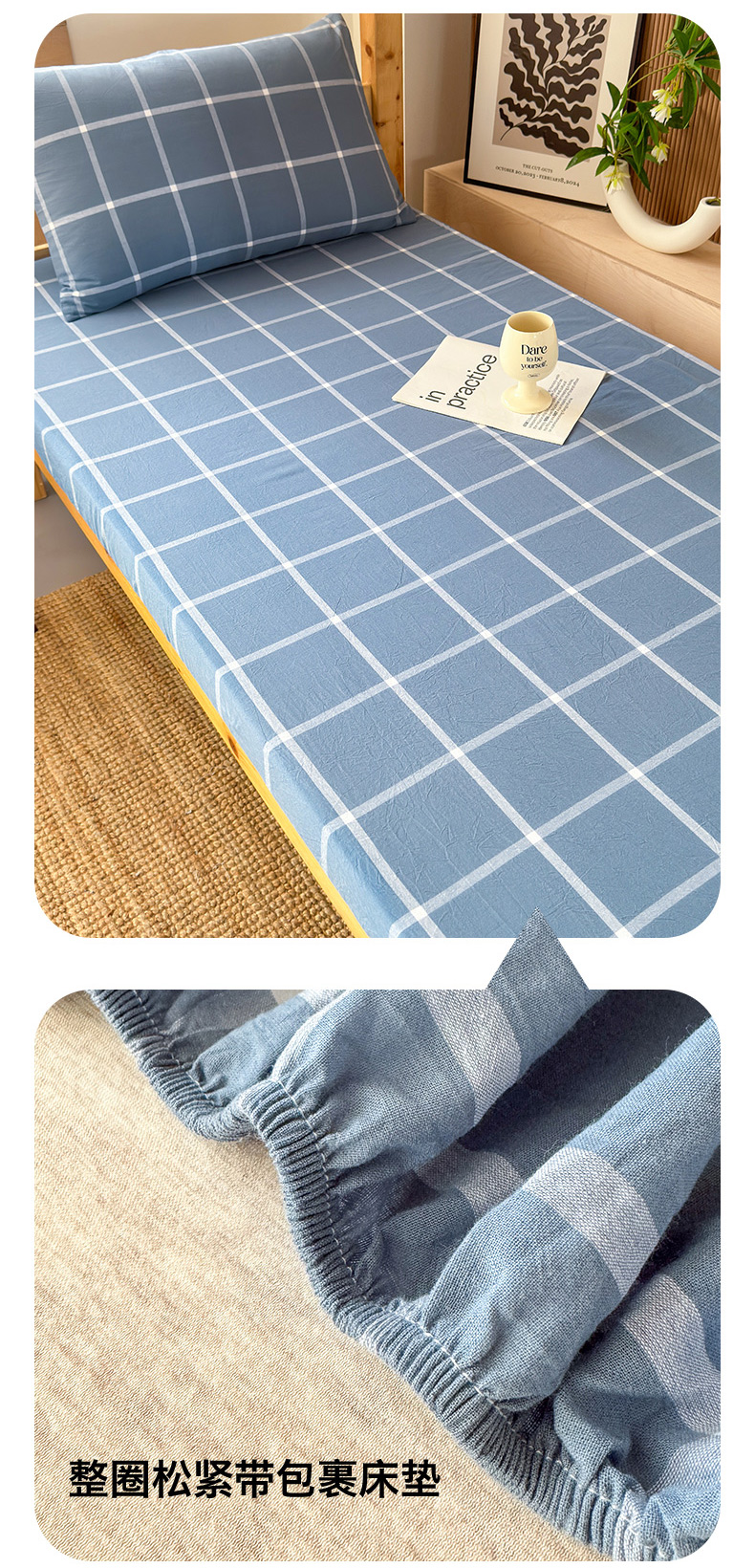 北欧良品2025新款色织水洗棉学生单品床笠 纯棉-海蓝大格