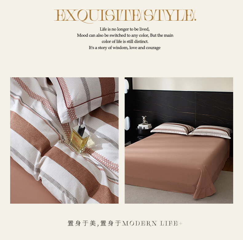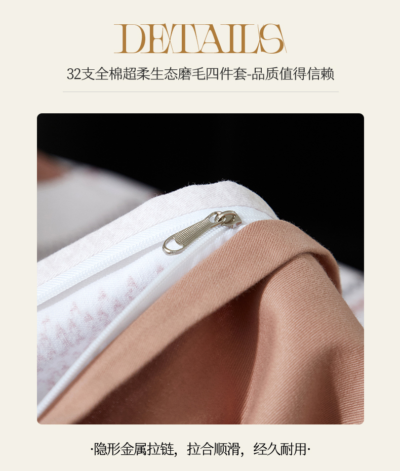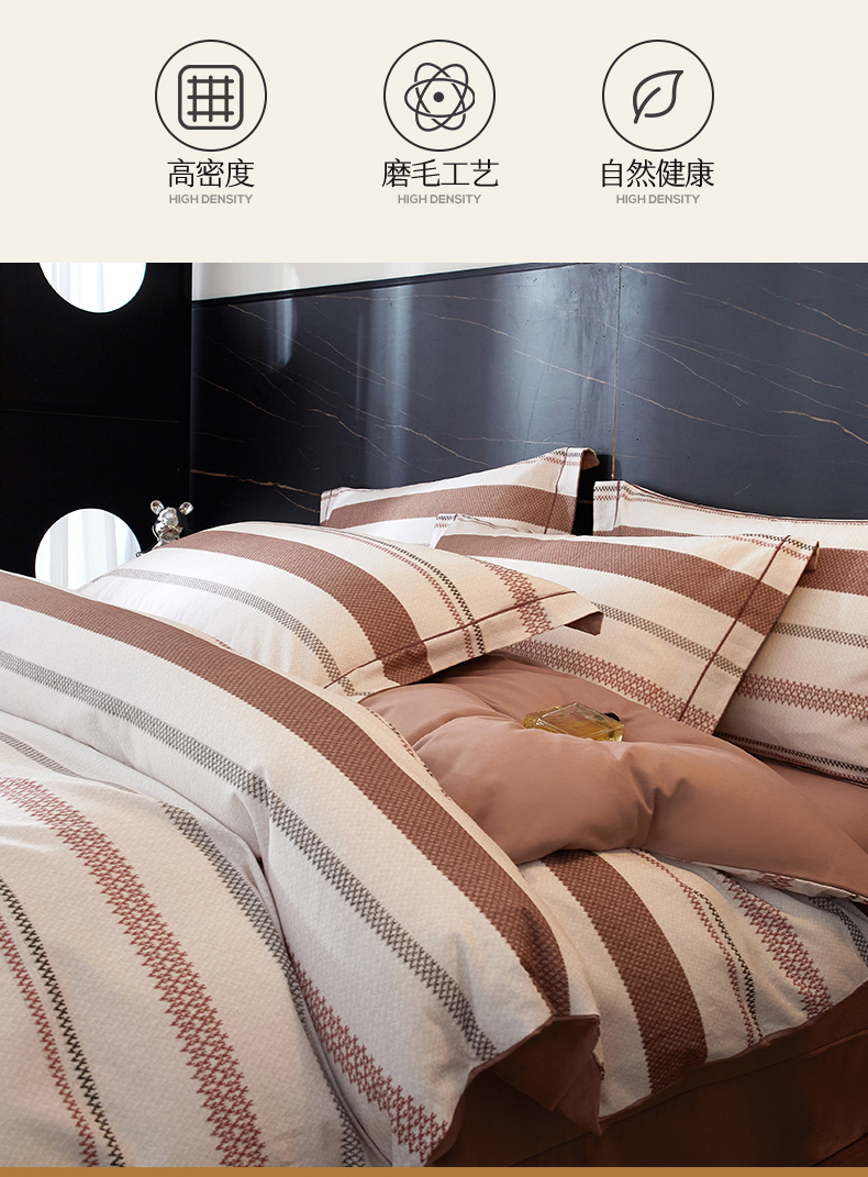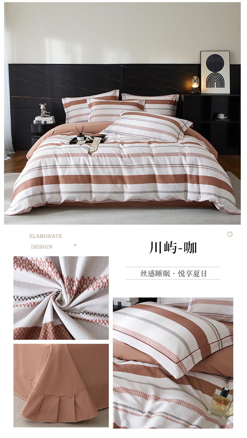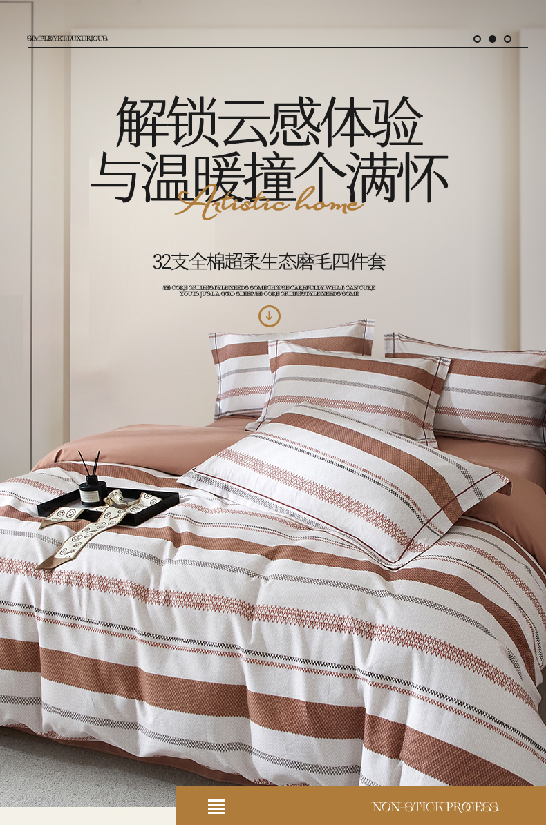 曼秀琳 2025秋冬新款32支超柔生态磨毛四件套 川屿-咖