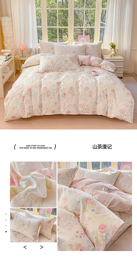 禧安居 2025新款高支高密活性印染全棉印花四件套全棉四件套三件套被套(支持定制尺寸)山茶漫记,山茶漫记
