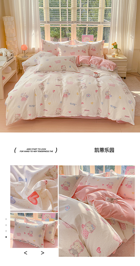 禧安居 2025新款高支高密活性印染全棉印花四件套全棉四件套三件套被套(支持定制尺寸)原宿女孩,原宿女孩