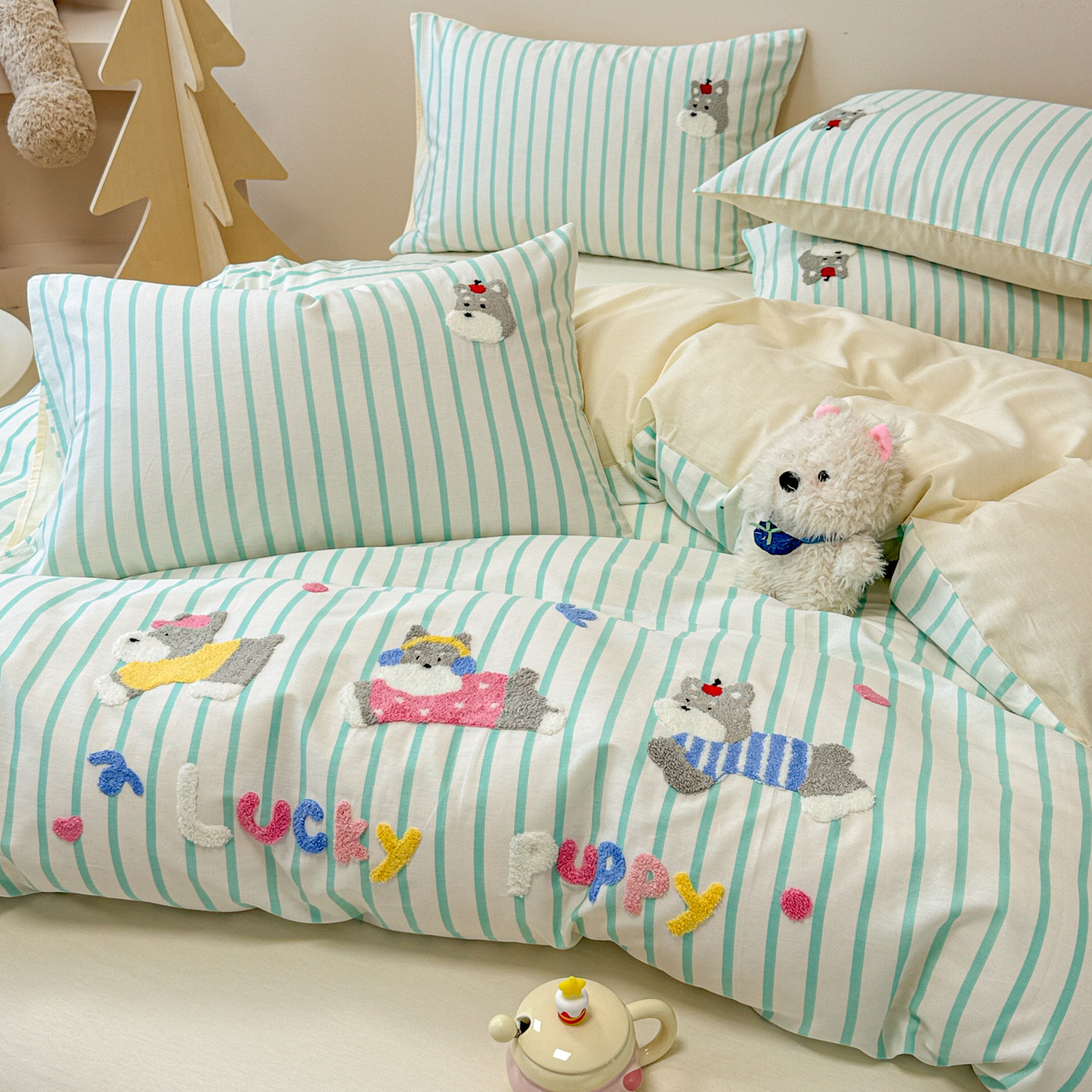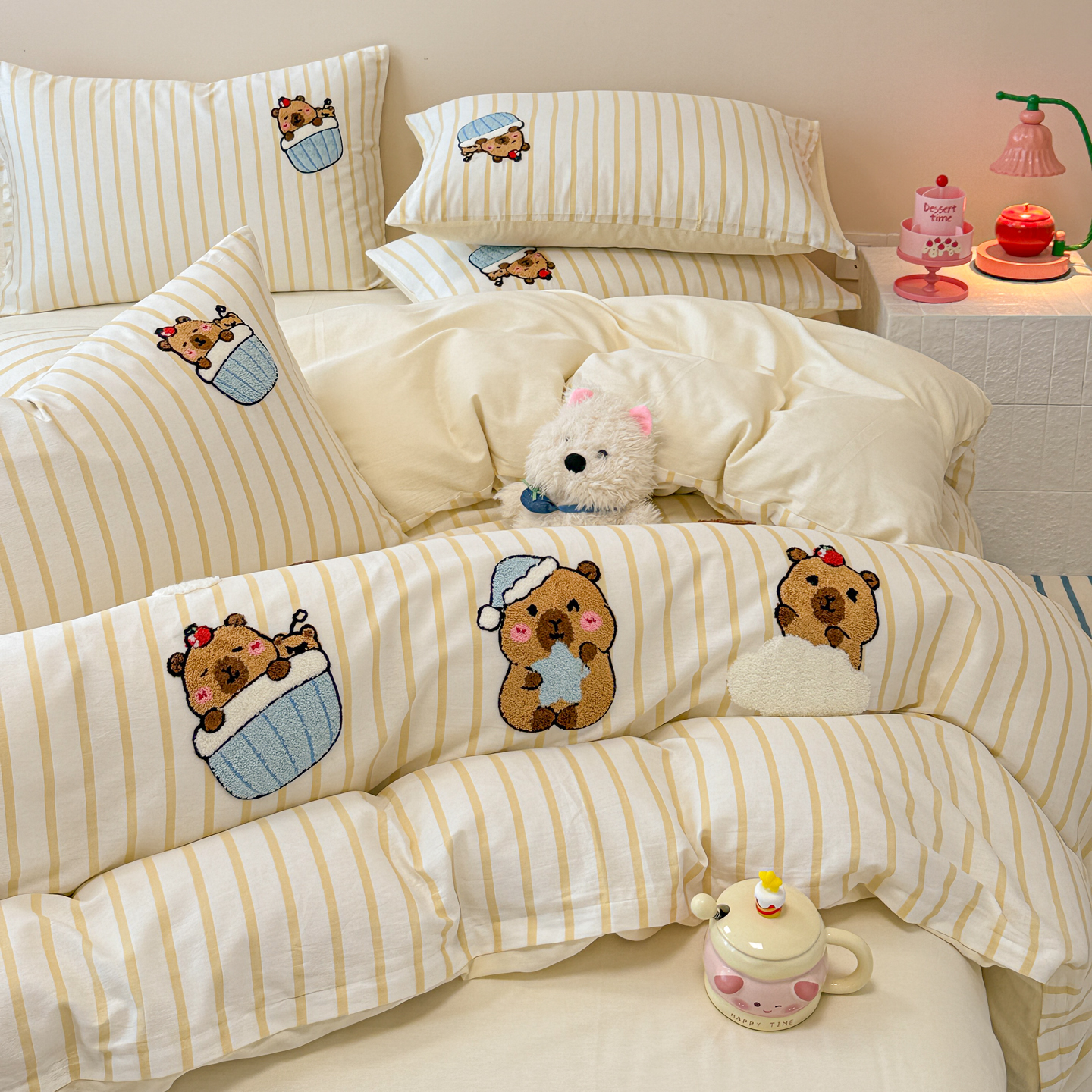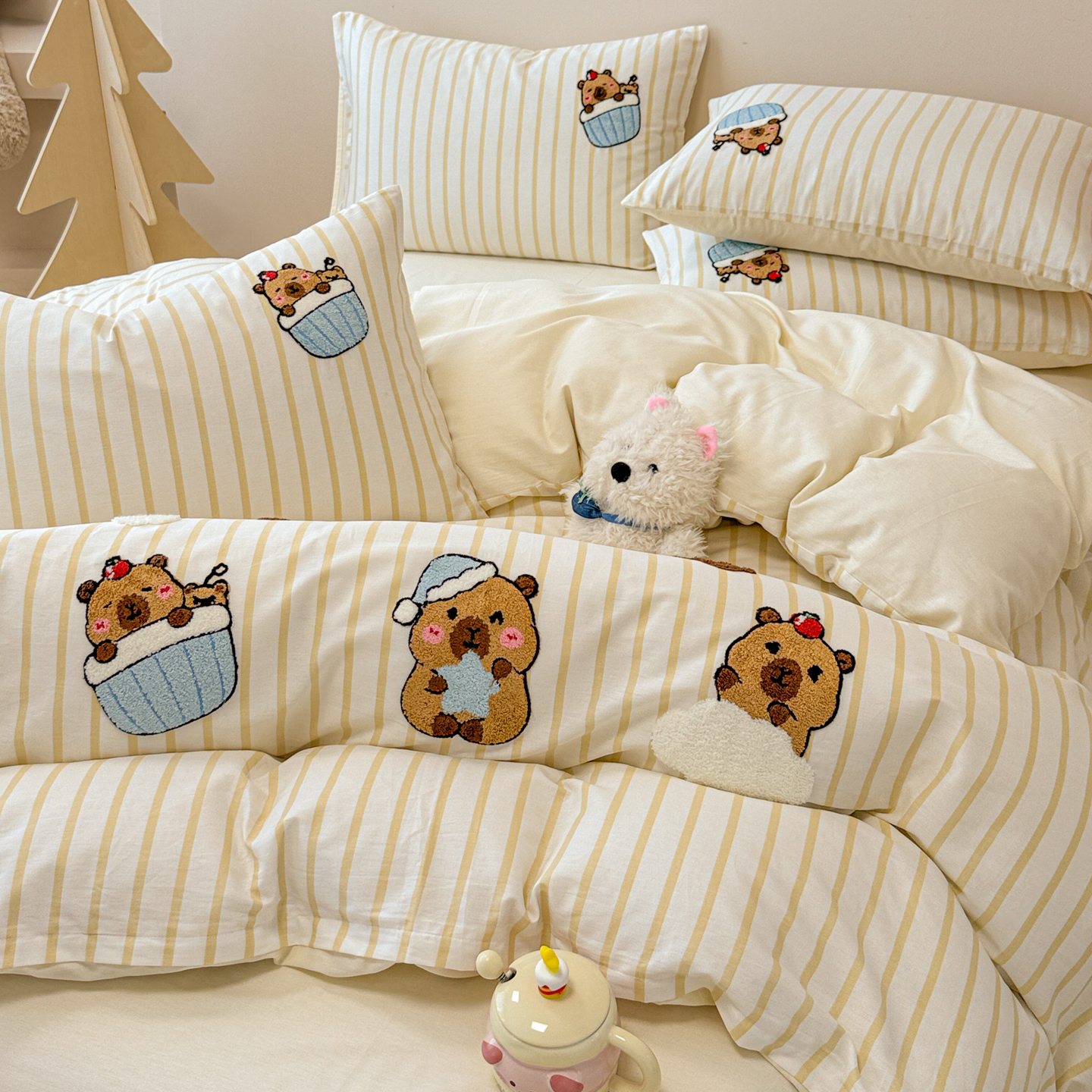 当前位置: 91家纺网 > 商品网购 > 床品套件 > 四件套 > 全棉普通四件套 > 呗旺鹿 2025新款全棉纯棉条纹毛巾绣卡通系列四件套 灰条纹-爱睡觉的卡皮