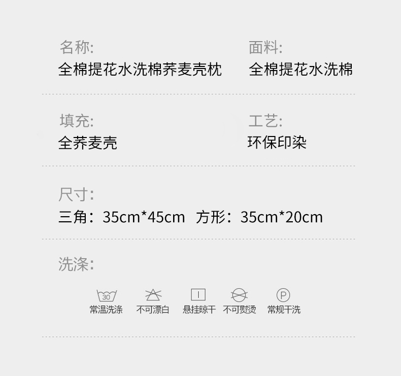 商品名称:佳合枕芯 2025新款新品全棉水洗棉三角组合款荞麦护颈椎枕 枕头枕芯 提花三角组合荞麦枕-米黄色 三角35*15方枕35*20/只