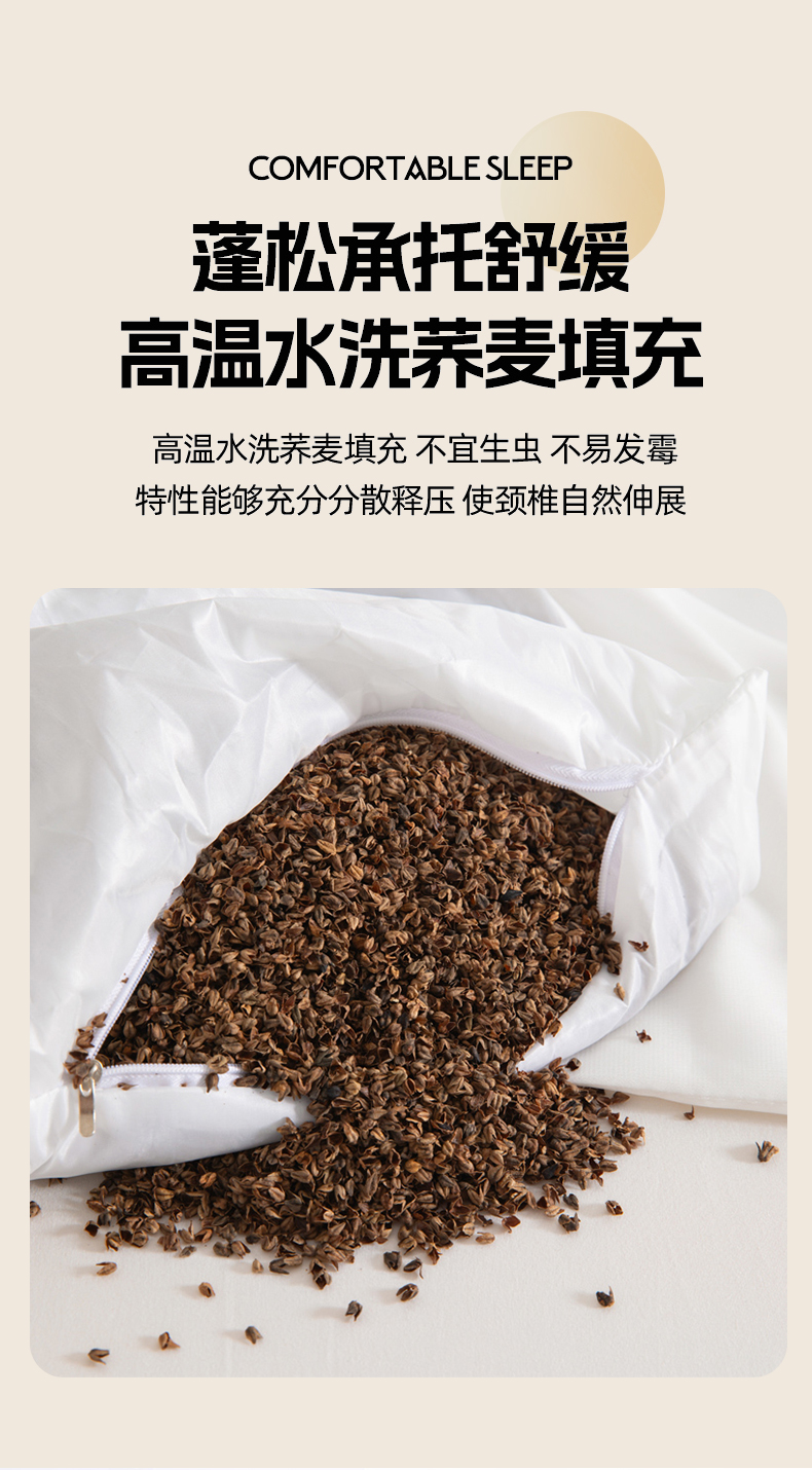 (总)佳合枕芯 2025新款棉麻国风刺绣荞麦枕(一枕两用) 枕头枕芯,原色1只,原色2只