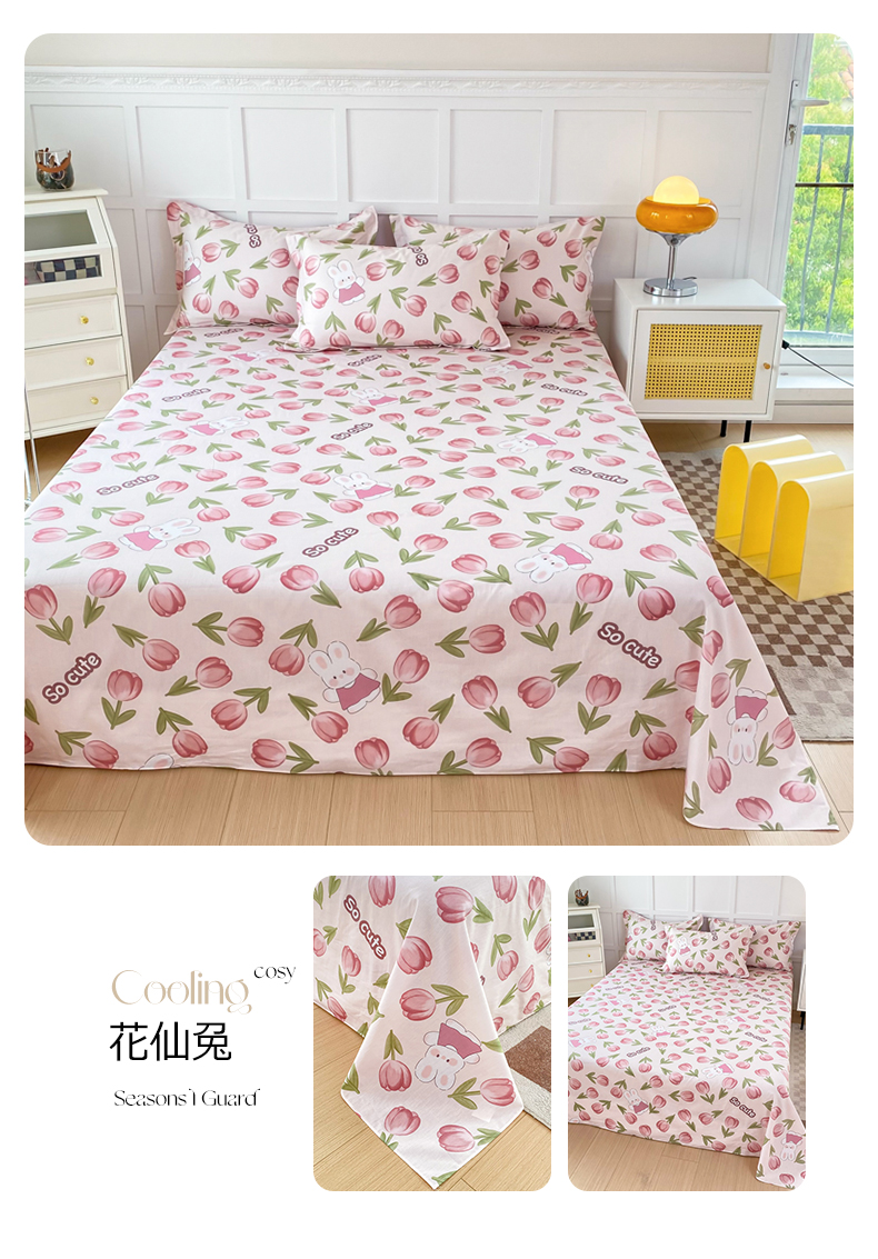 小叮当家纺仓储工厂店 (爆款花型 长期款 不断货)2025新款小清新印花条纹卡通花卉纯棉全棉单品系列--单床单 花千骨